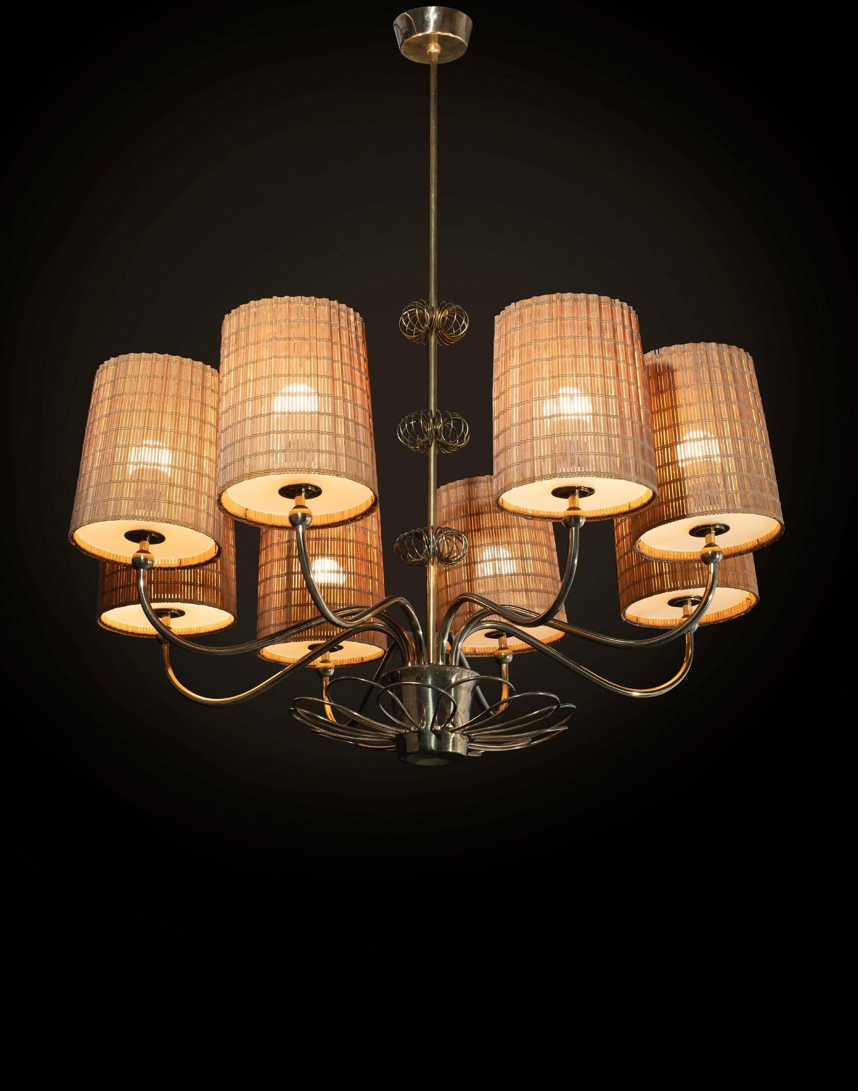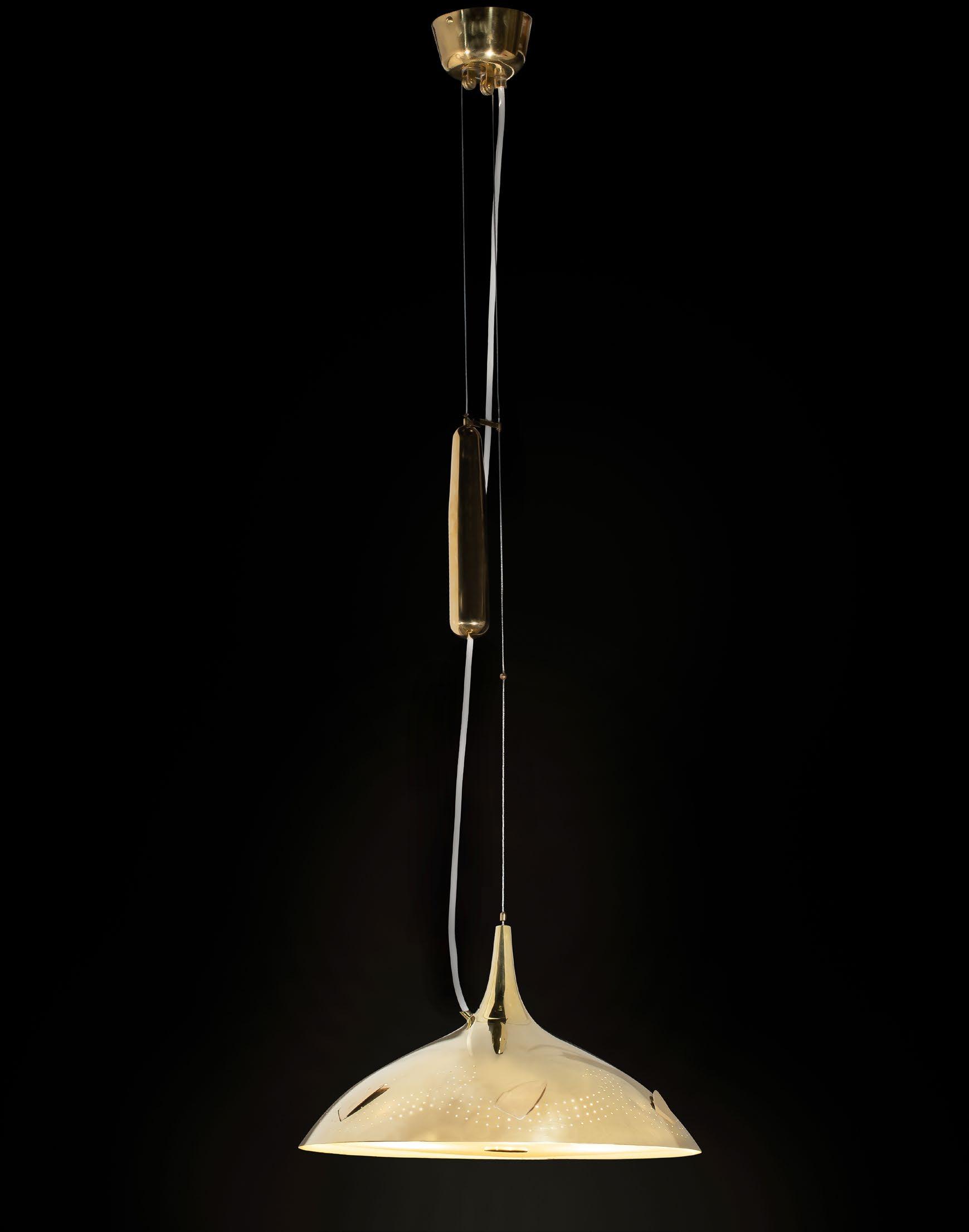 The selection we offer here is unique and exceptional. It illustrates the permanence of nature's organic forms in the designer’s creations, as well as his predilection for brass, giving light a warm, golden glow. Combined with opaline glass, leather or rattan, Paavo Tynell dexterously demonstrates his ability to stage light like no other. It is this singularity that has earned him the reputation of being the Finnish master of light.