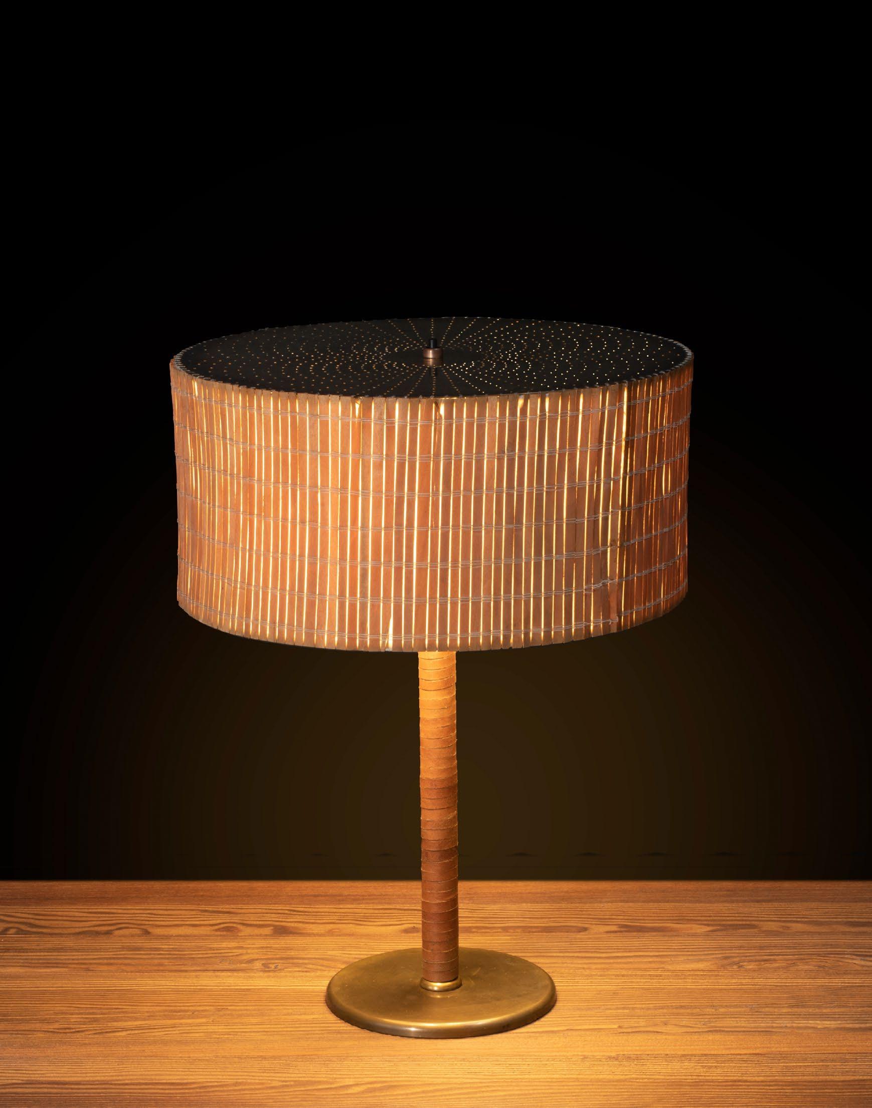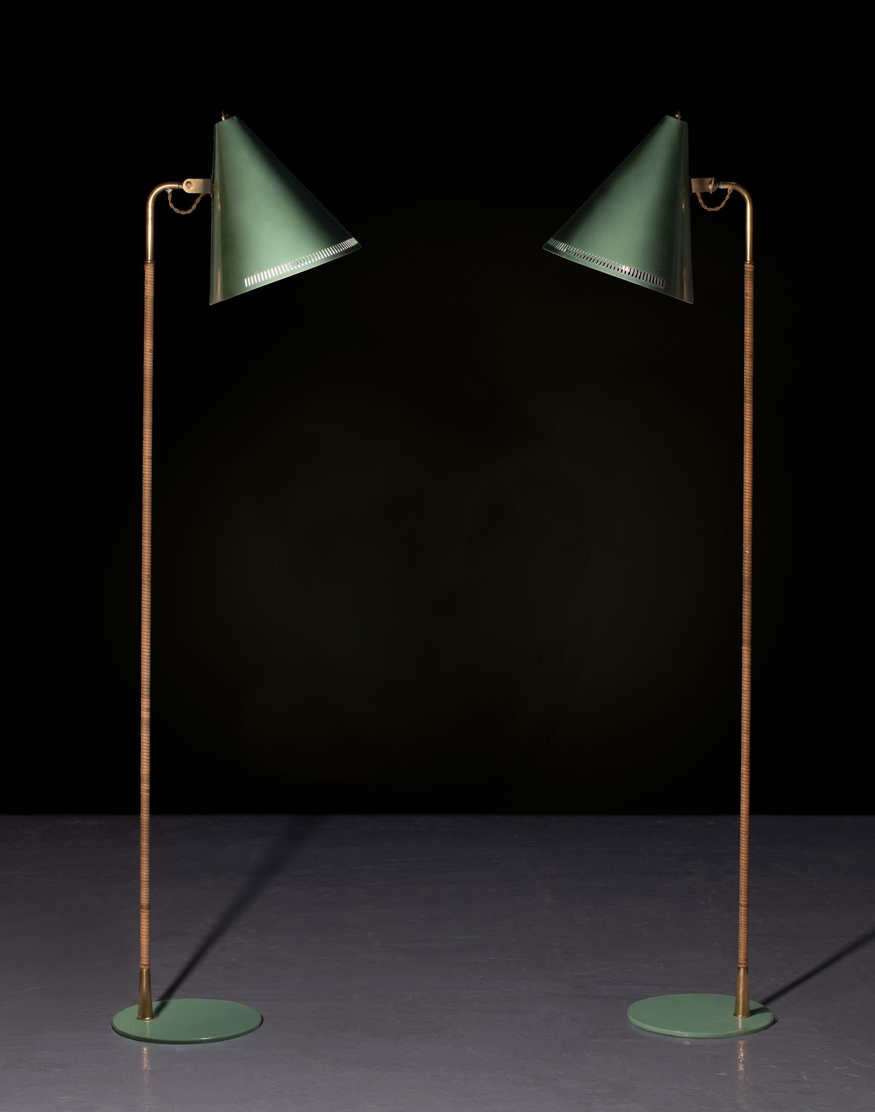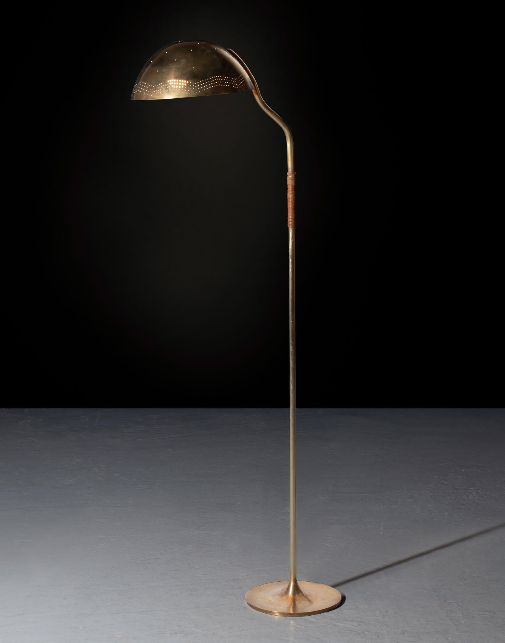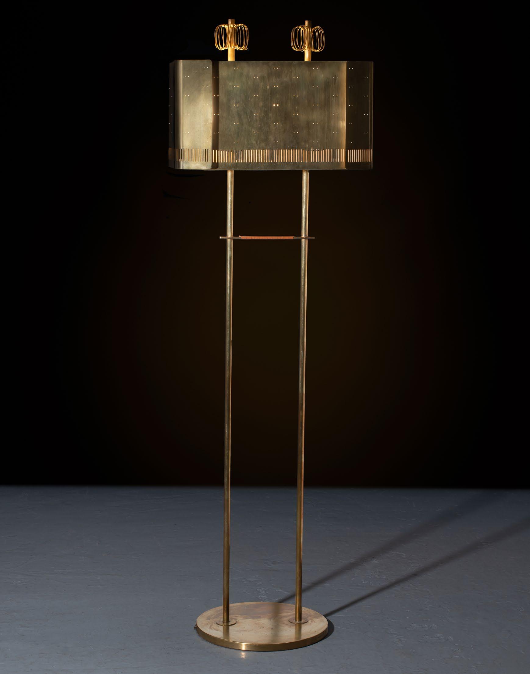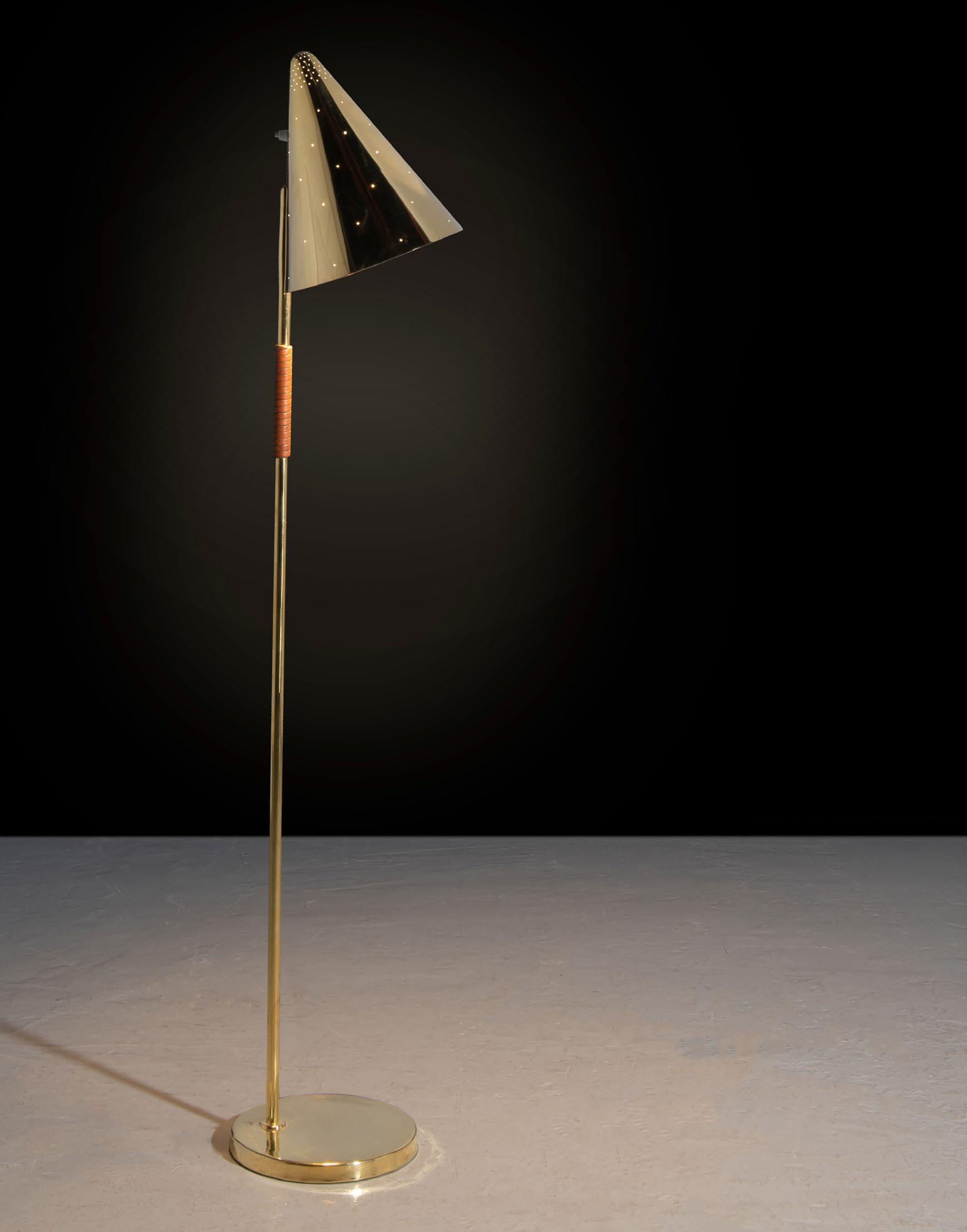 A brass and leather mod.9619 floor lamp by Paavo Tynell for Taito Oy – circa 1950 70.07 × 20.86 × 7.87 in. 20 000 - 30 000 €