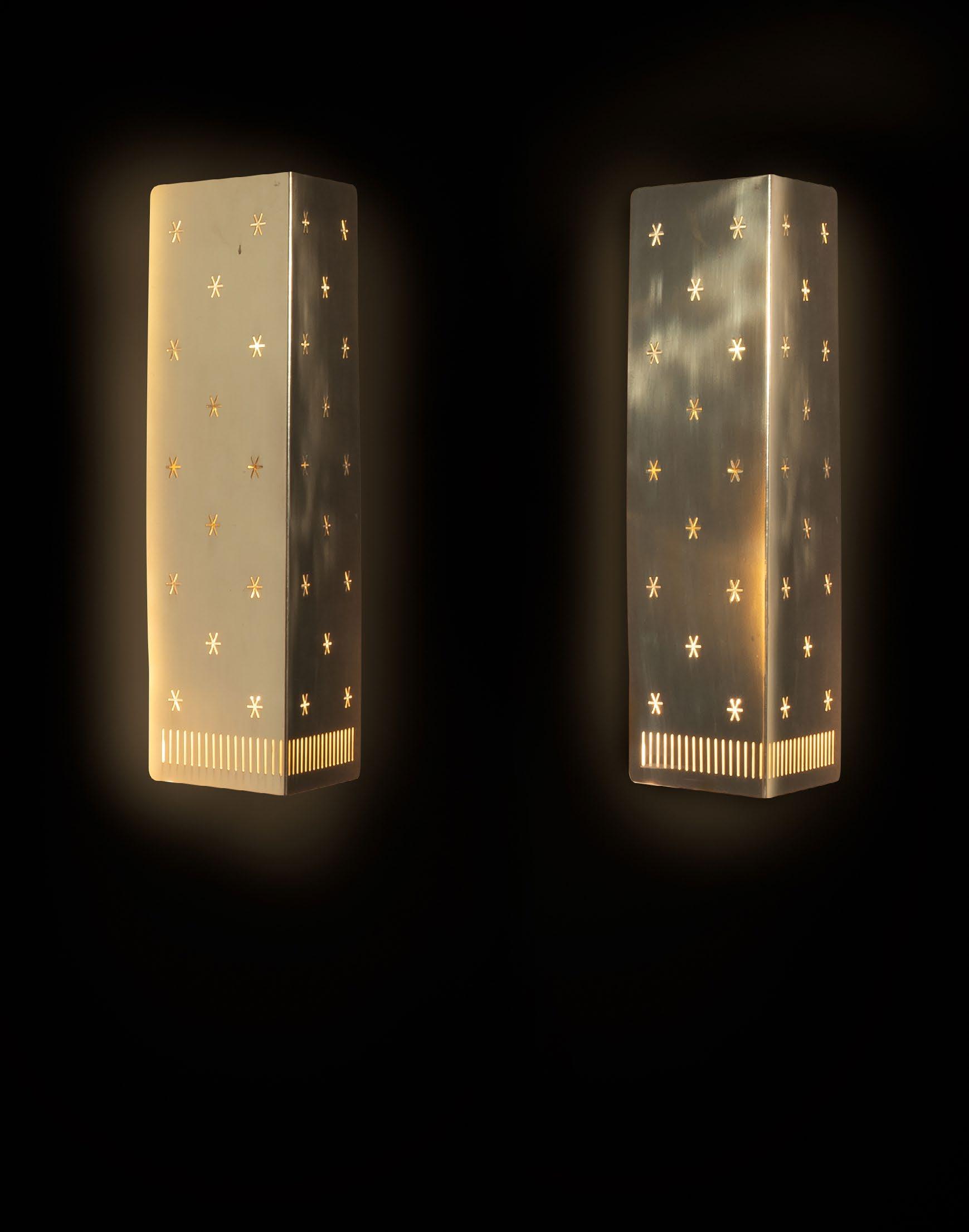 An important pair of lacquered metal and brass wall lamps by Paavo Tynell for Taito Oy – circa 1940 42.51 × 9.84 × 7.08 in. 18 000 - 25 000 €