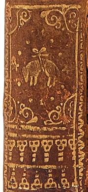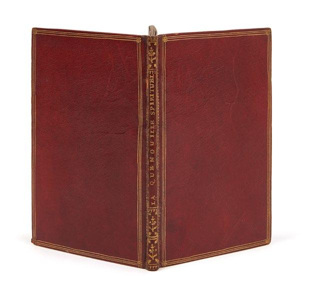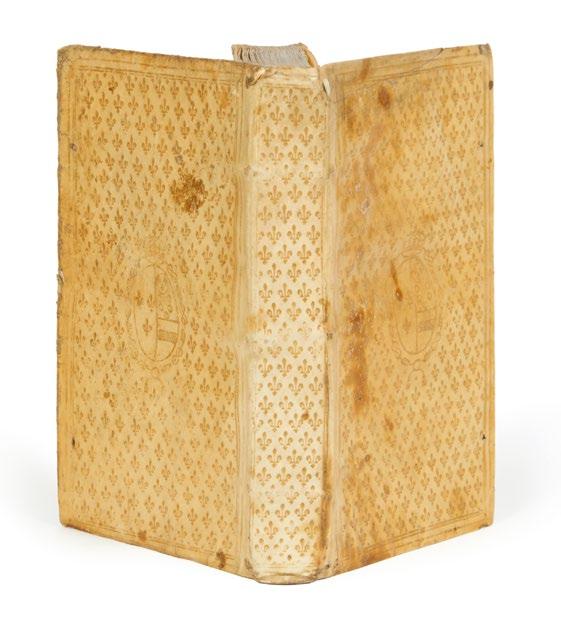 2 tomes en un volume in-8, veau marron, décor dans le genre Du Seuil, avec double encadrement à froid, fleurons d’angle dorés et fleuron central à froid, dos à 4 nerfs orné d’un petit fleuron à froid répété (Reliure de l’époque)