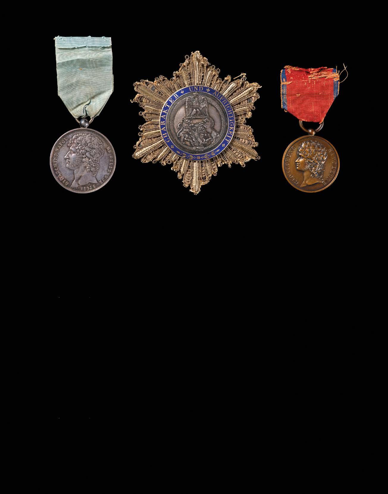 Les hommes illustres passent, leurs objets demeurent et nous renseignent sur leur quotidien. Certains d’entre eux sont des supports du pouvoir – comme le fusil personnel de l’Empereur qui illustre la pratique restaurée des chasses officielles après les affres de la Révolution – ou encore des véhicules diplomatiques –comme le bijou de chevalier de la Couronne de Rue offert par le roi de Saxe à l’Empereur – qui devient par la suite trophée de guerre lorsqu’il est pris par les troupes de Blücher dans la berline de l’Empereur le soir de Waterloo.