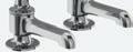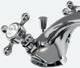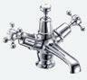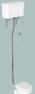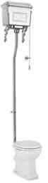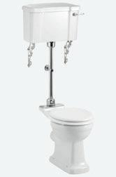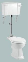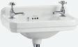 Edwardian 1200mm basin with washstand | Three tap hole mixer with Claremont handles | Standard 440 medium level WC with Chrome cistern with flush pipe and lever | Soft close seat, White | Seat handles | All fittings, brassware and accessories are in Chrome