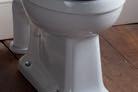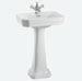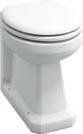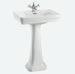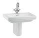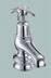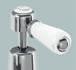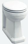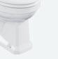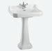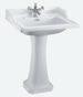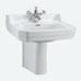 Right: Edwardian 560mm basin with full pedestal | 5” pillar tap with Claremont handles | Standard close coupled WC with lever | Soft close seat, White