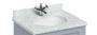 Left: Edwardian 560mm round basin with washstand | 3” pillar taps with White Kensington handles | Tumbler holder and spare WC roll holder | Back to wall WC with concealed cistern and lever | Soft close seat, White | All fittings, brassware and accessories are in Chrome