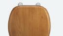 Above Clockwise: Edwardian 515mm cloakroom basin | Towel rail | 3” pillar taps with Claremont handles / Claremont Bath Shower Mixer Deck Mounted / Standard 520 medium level WC with flush pipe and lever | Soft close seat, Oak / Glass shelf with railing / All fittings, brassware and accessories are in Chrome