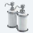 Contemporary 580mm basin with semi pedestal | Mono basin mixer with Claremont handles | WC roll holder | Soap dispenser | Triple robe hook | WC brush holder | Ornate lights with tube frosted glass | Wall hung WC with concealed cistern and lever | Soft close seat, White | All fittings, brassware and accessories are in Chrome