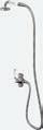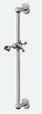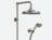 Riviera dual valve, slide rail, handset and hose, and 9” shower head | Riviera 580mm D shaped basin with semi pedestal | Towel ring | Shower basket | WC roll holder | Arched mirror | Round lights with tube frosted glass shades | Riviera wall hung WC with concealed cistern and lever | Riviera soft close seat | All fittings, brassware and accessories are in Chrome