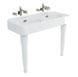Edwardian 1200mm double basin with washstand | Three tap hole mixers with Claremont handles | Towel rings | All fittings and accessories are in Gold