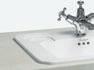 Left: Three tap hole mixer with Birkenhead handles / Soap dish / Standard 520 low level WC with flush pipe and lever | Soft close seat, White | WC roll holder