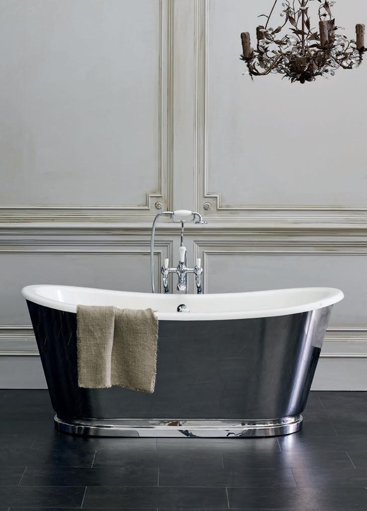Balthazar bath with stainless steel outer | Deck mounted bath shower mixer with Kensington handles | Stand pipes | All fittings, brassware and accessories are in Chrome