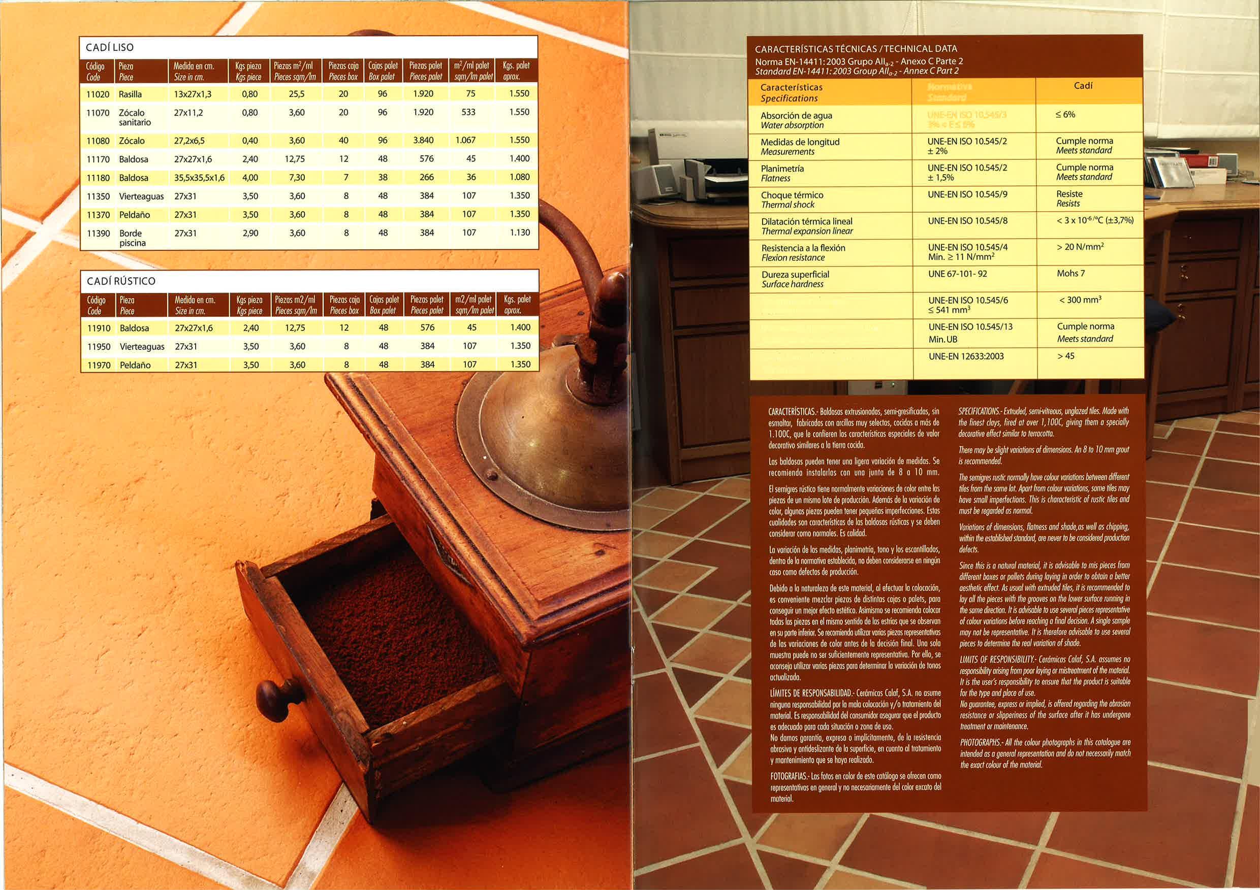 CARACTERÍSTICAS Y RECOMENDACIONES.- Pavimentos extrudidos, gresificados, sin esmaltar, fabricados con arcillas muy selectas, cocidos a más de 1.100ºC, que le confieren las características especiales de valor decorativo similares a la tierra cocida pero con unas prestaciones superiores. Estos pavimentos dan respuesta a las corrientes de diseño actuales, siendo muy versátiles y combinables. Se recomiendan tanto para exteriores como para interiores.