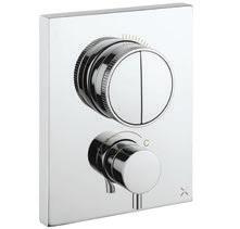 shower valves are thermostatically controlled for 100% safety. Trim sets include: flow control, thermostat, backplate and handles.
