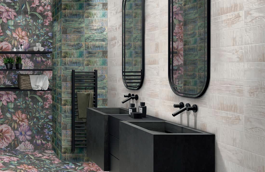 WALL TILE: Oldwood Bianco 10x30 4”x12” Oldwood Green 10x30 4”x12”