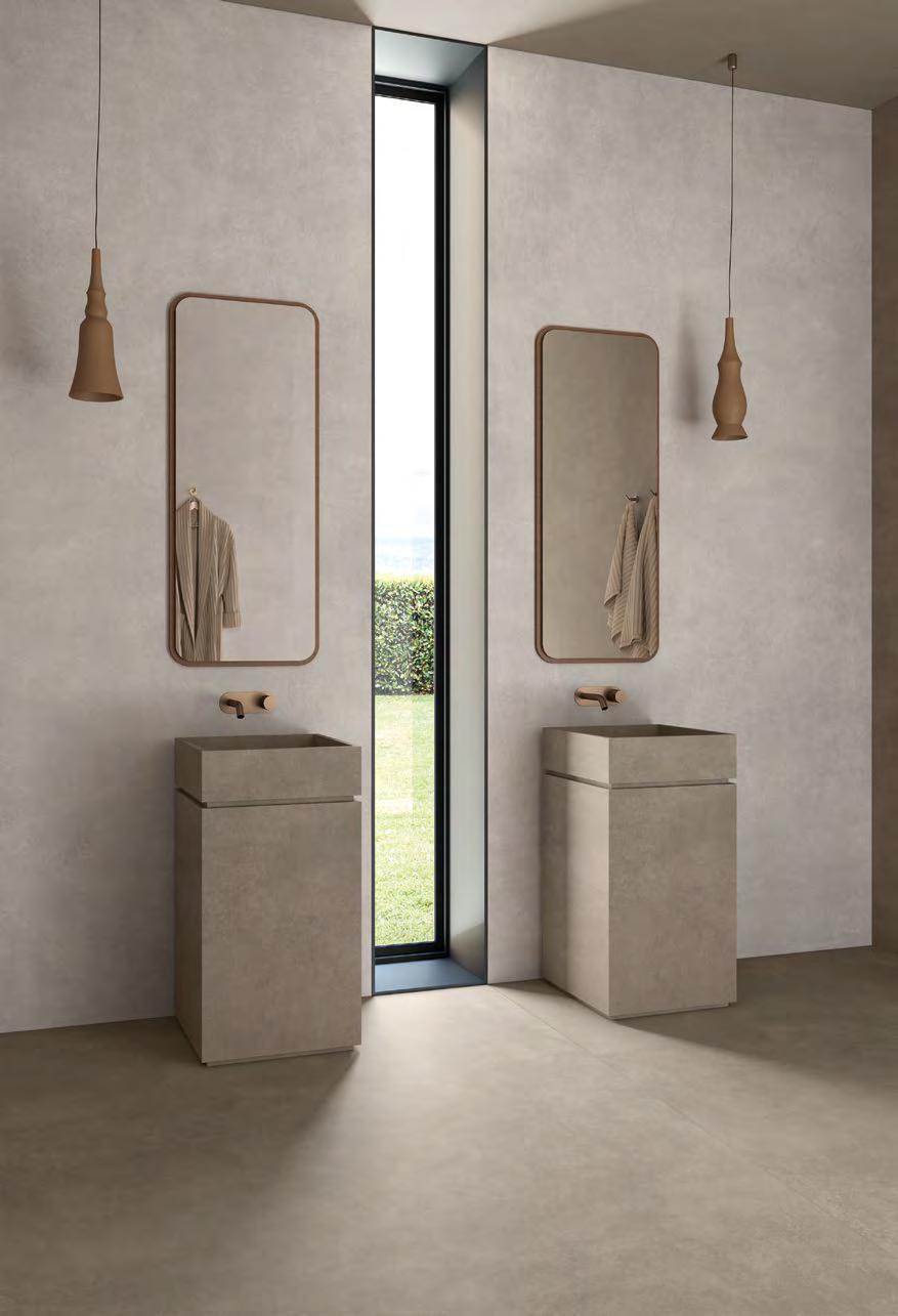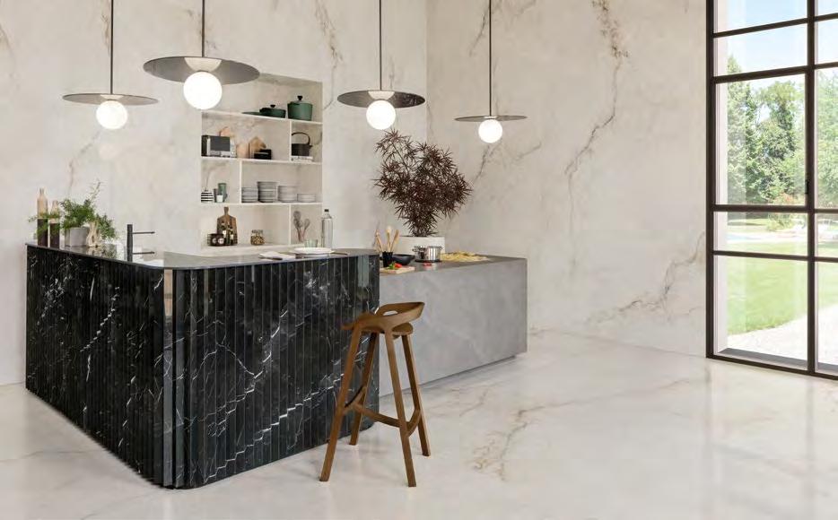 Ceramic slabs in two sizes – a rectified 160x320 size with 6.5mm thickness and an unrectified 162x324 size with 12mm and 20mm thickness - enable the creation of tops and backsplashes for kitchens and bathrooms, worktops, tables, doors.