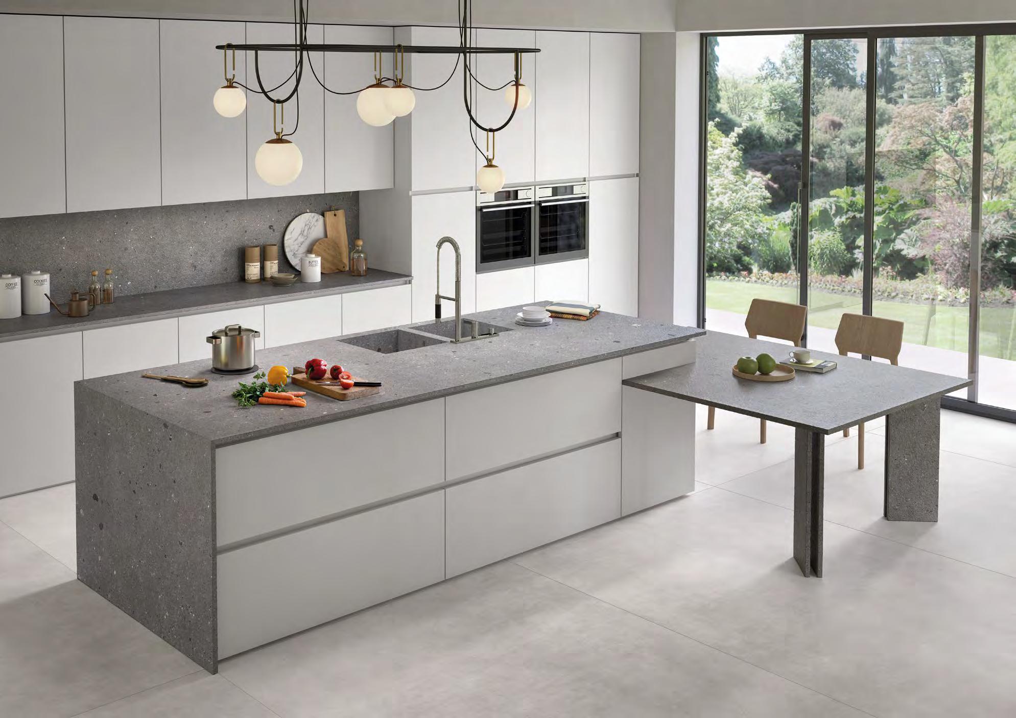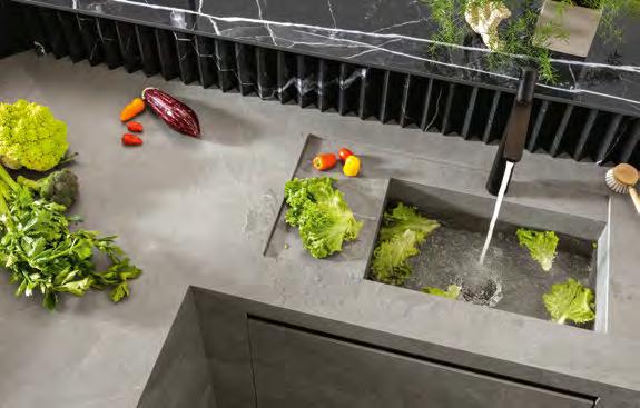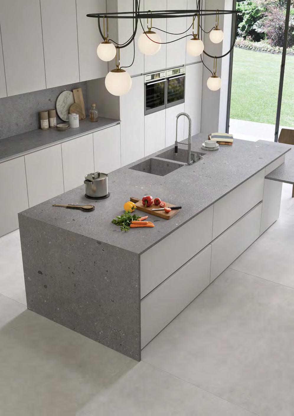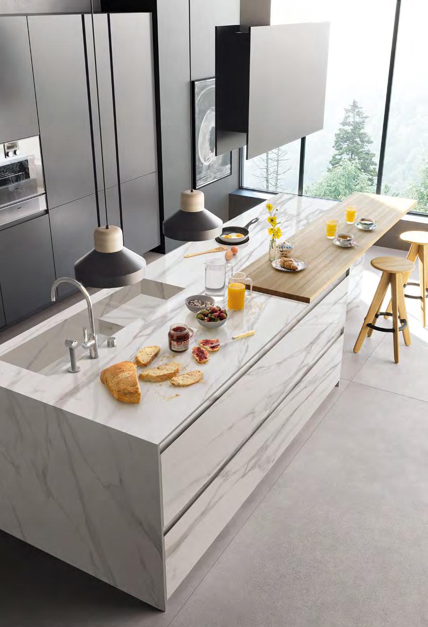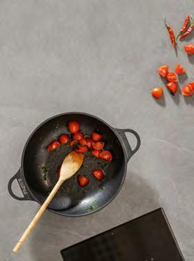 Es ist ein neues Küchenerlebnis: eine einzige durchgehende Fläche, auf der die Speisen absolut sicher zubereitet, verarbeitet und schließlich gekocht werden können. Um die beste Zeit des Tages sorglos zu genießen. Die Induktionskochfläche ist verdeckt, d.h. sie befindet sich unter der Platte aus Feinsteinzeug, sie ist aber perfekt integriert, ohne dass dafür Zuschnitte ausgeführt werden mussten: Dadurch lässt sich die Keramikplatte auch besonders leicht reinigen. Level ist aufgrund der Hygiene, der Wärmeund Chemikalienbeständigkeit sowie der Pflegeleichtigkeit die ideale Lösung, um in jedem Ambiente höchste Qualität in Verbindung mit modernstem Design sicherzustellen.