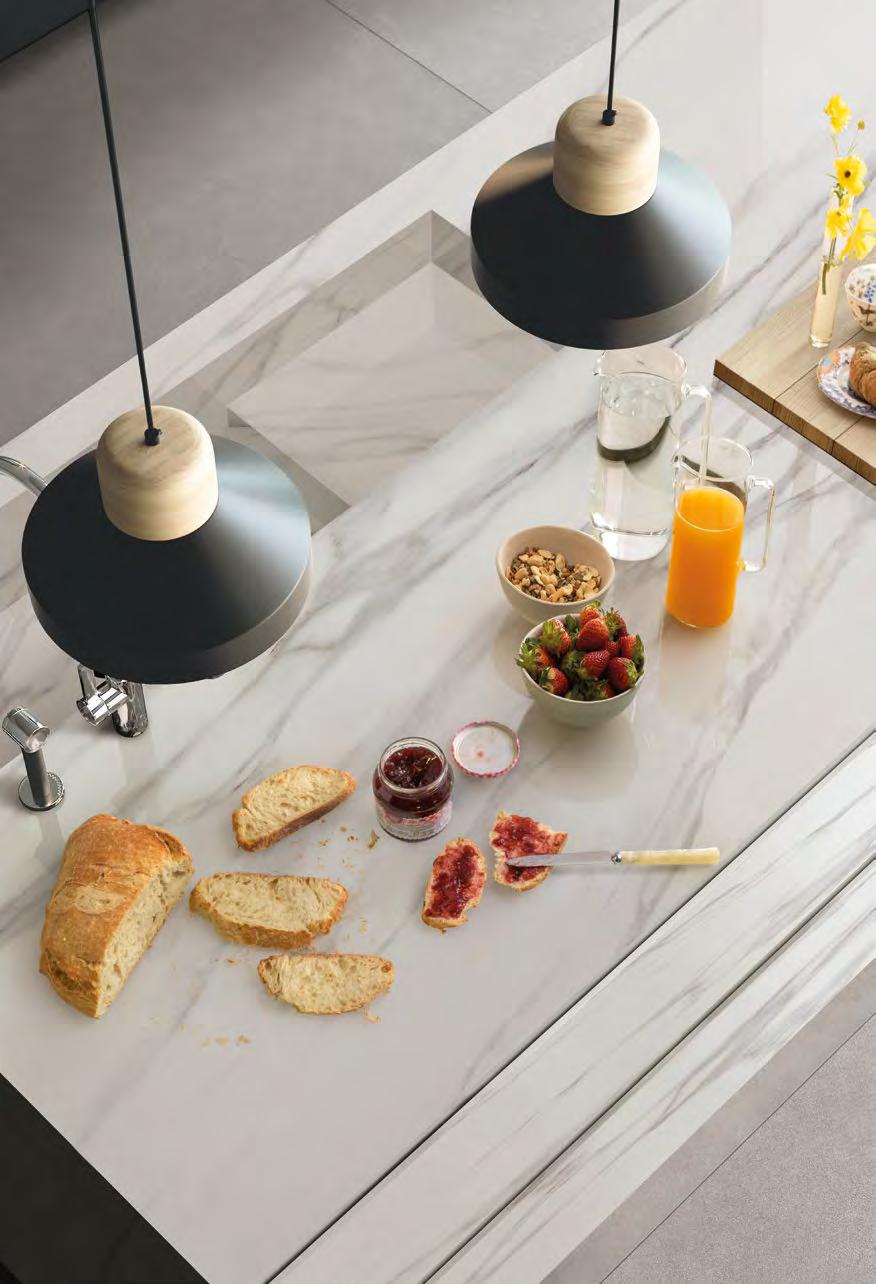Besonders starkes Design Eine neue Option für noch mehr optische Perfektion und Vielseitigkeit bei der Materialbearbeitung. Mit der Einführung der Stärke 20 mm für die Platten im Format 162x324 stehen zur Wahl: Tinta Unita White