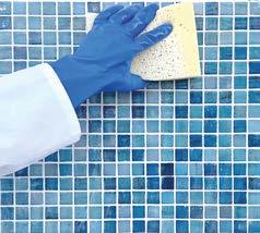 Laisser sécher jusq’à ce que le joint perde son éclat superficiel et procéder à son nettoyage avec une éponge humide. Une fois que tout est sec, nettoyer avec un chiffon sec.