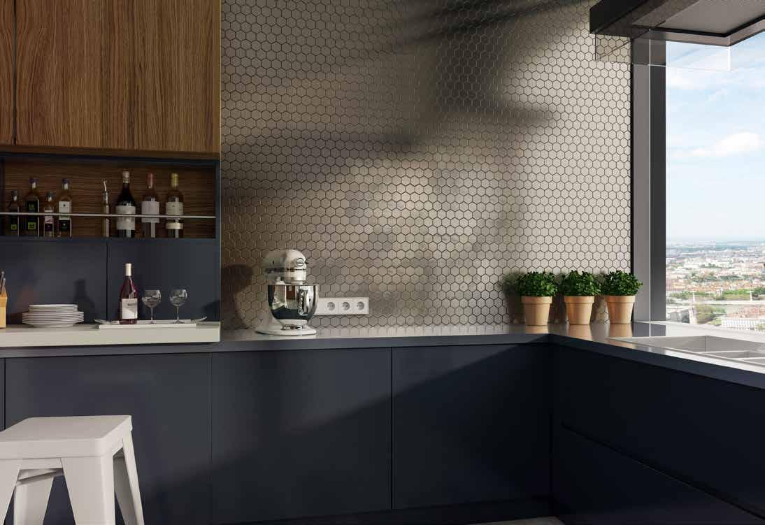Por último, las teselas se unen entre sí mediante la tecnología UNNION Polyurethane System, la cual le otorga consistencia y flexibilidad al panel de mosaico, para su fácil colocación.