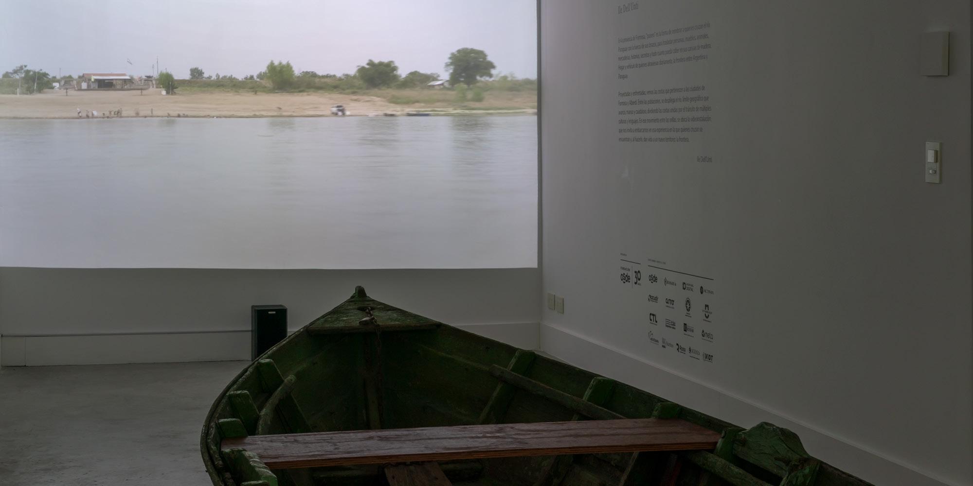 Entre las poblaciones se despliega el río, límite geográfico que avanza, manso y caudaloso, dividiendo las costas unidas por el tránsito de múltiples culturas y lenguajes. En ese movimien to entre las orillas, se ubica la videoinstalación, que nos invita a embarcarnos en esa experiencia en la que quienes cruzan se encuentran y, al hacerlo, dan vida a un nuevo territorio: la frontera.