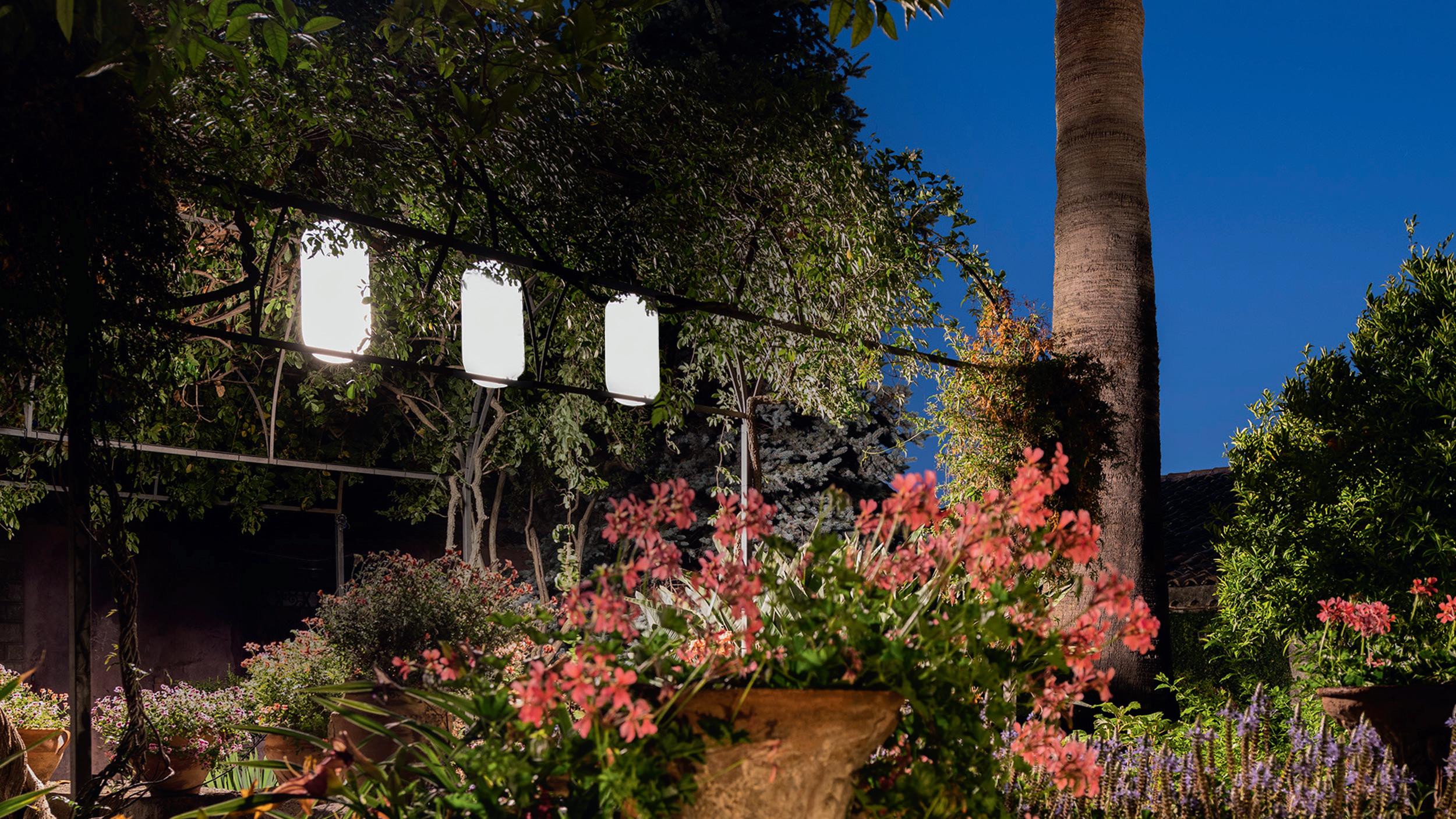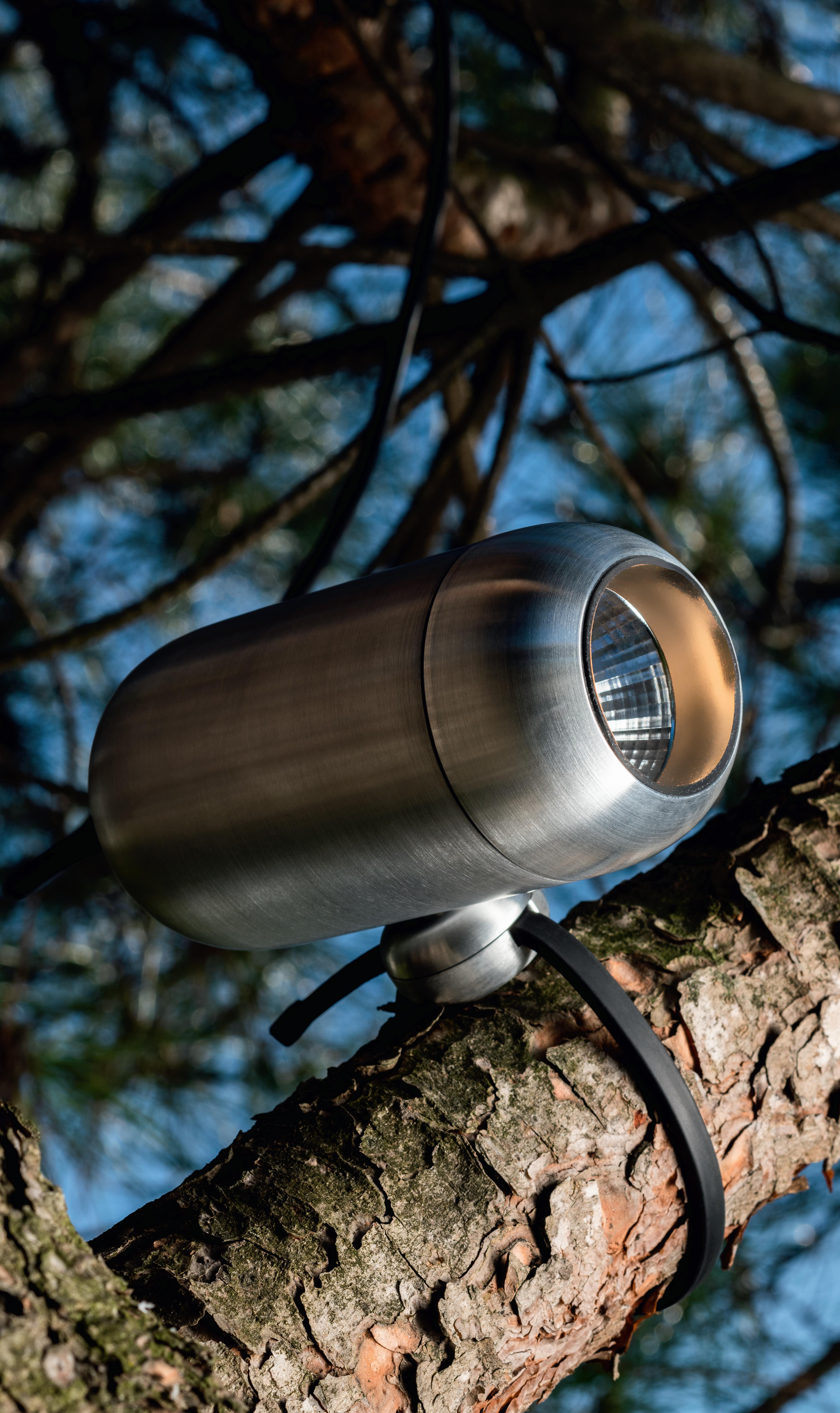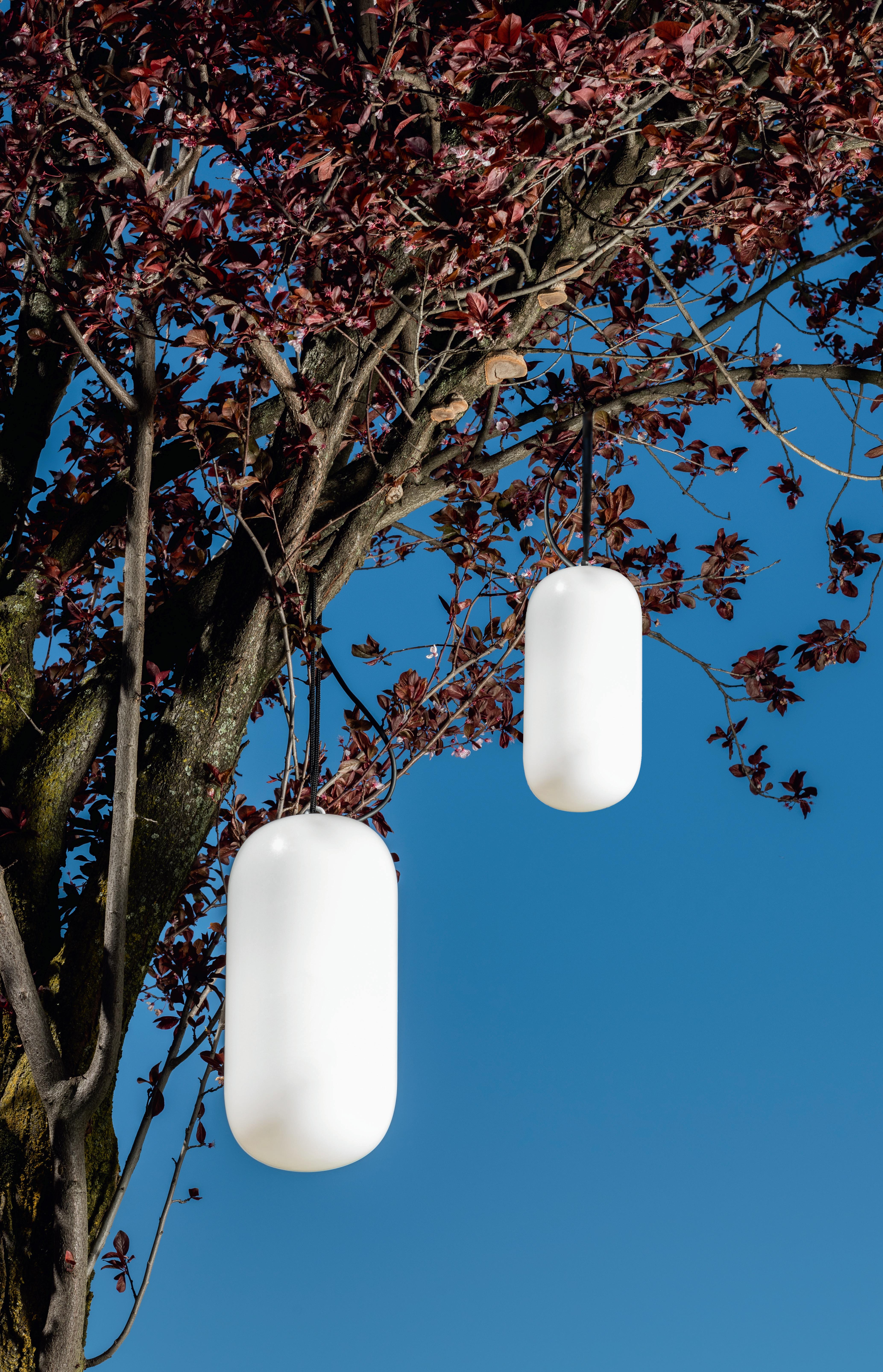 The energy feeding cables leave the attachment to the Gople outdoor LED cord free, granting the diffusers the utmost freedom of movement so they can be moved from one branch to another. Gople outdoor LED reinterprets the traditional way of lighting nature.