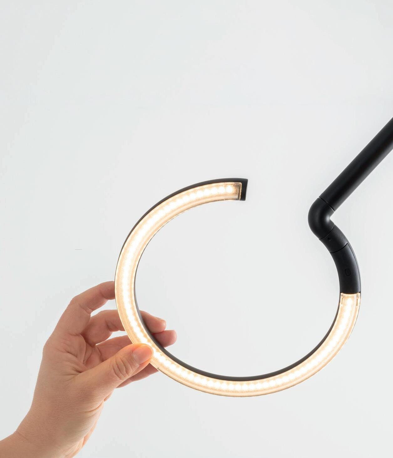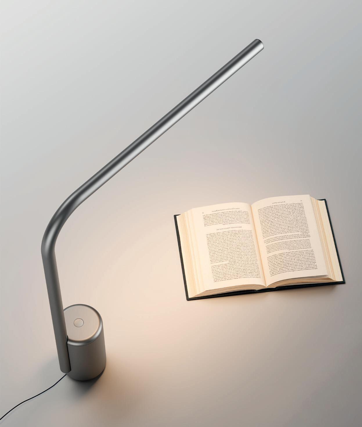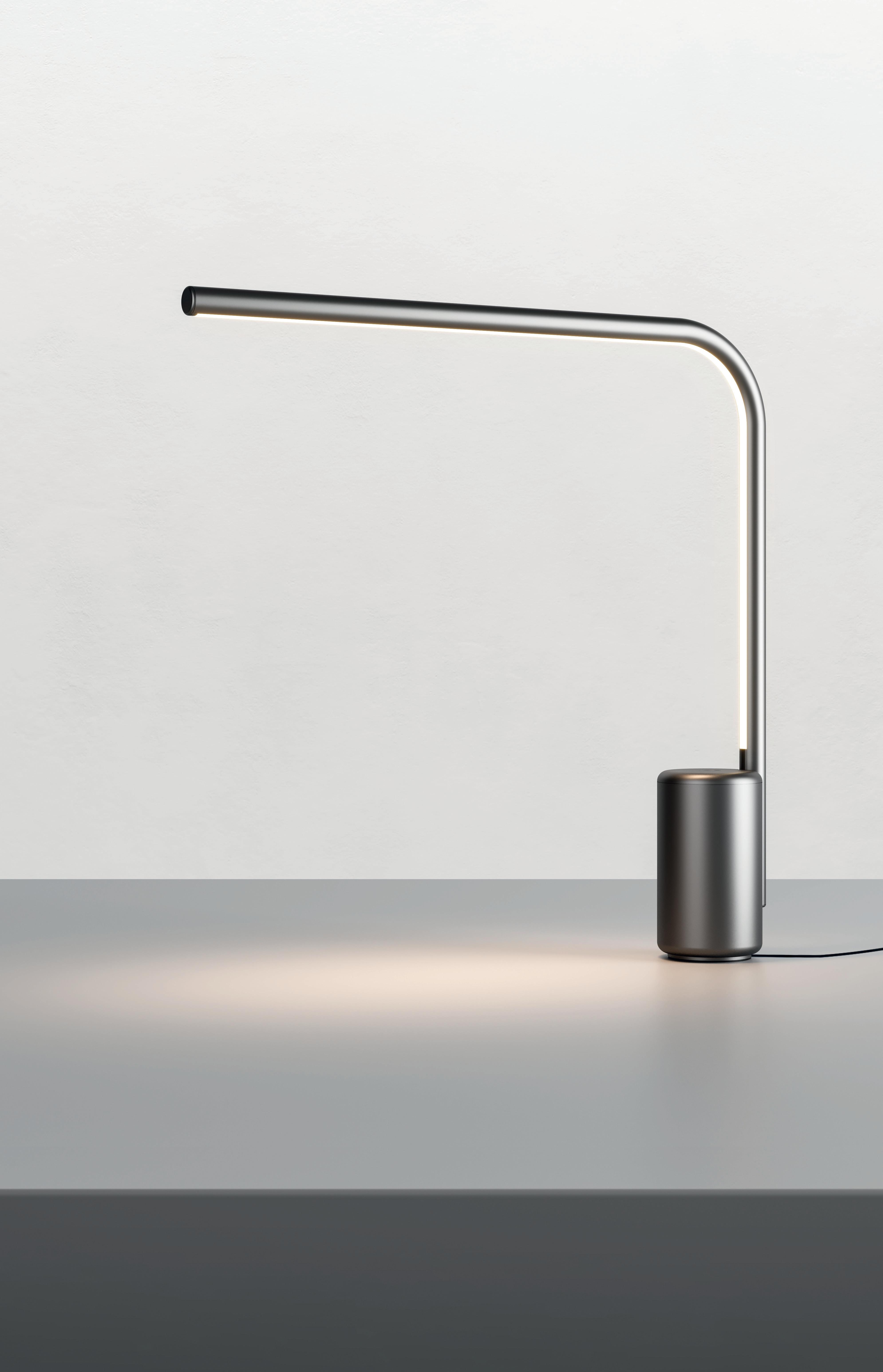In the task light the cylindrical, compact geometry of the base takes up minimum space on the work surface, leaving it uncluttered.