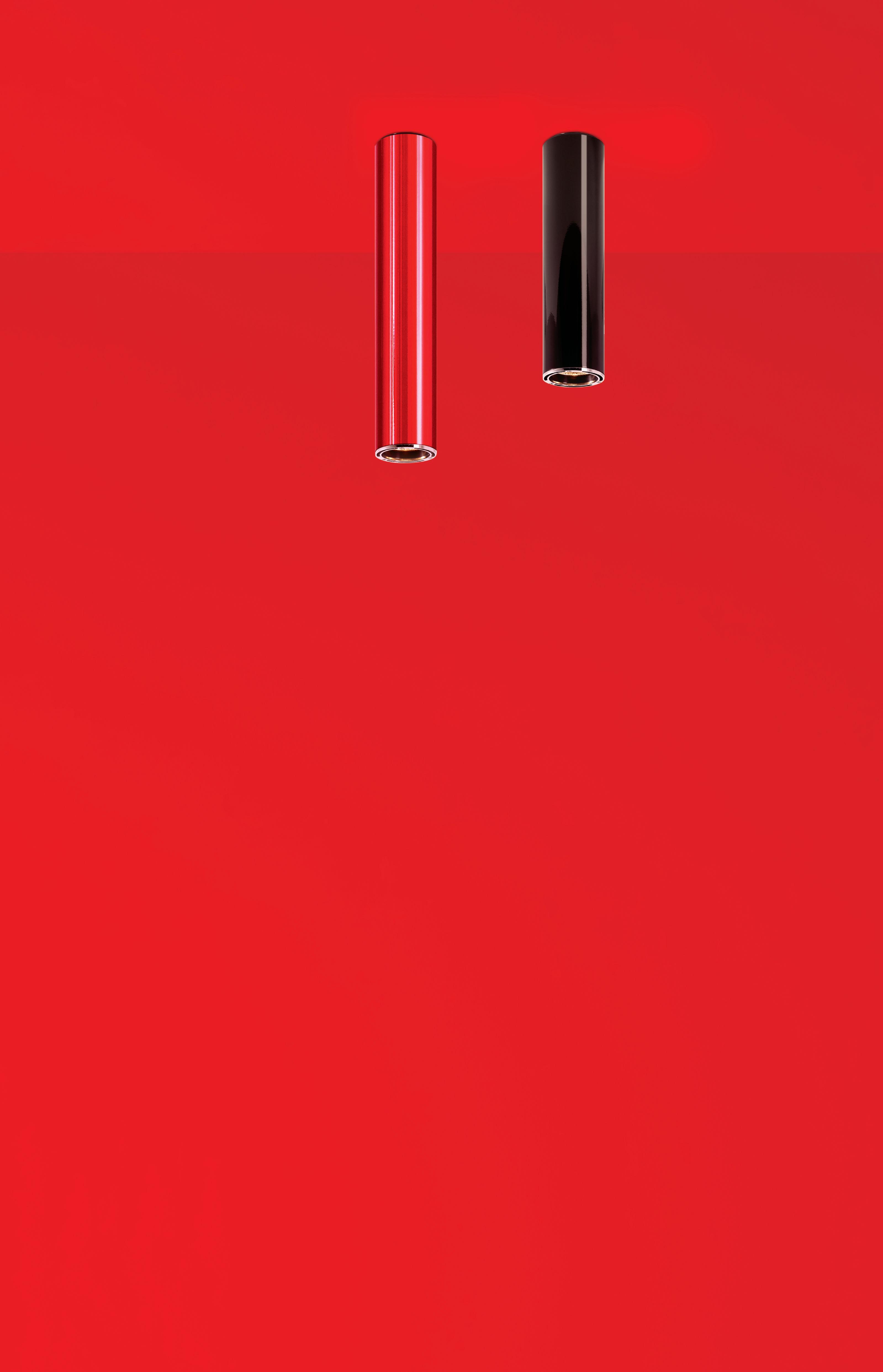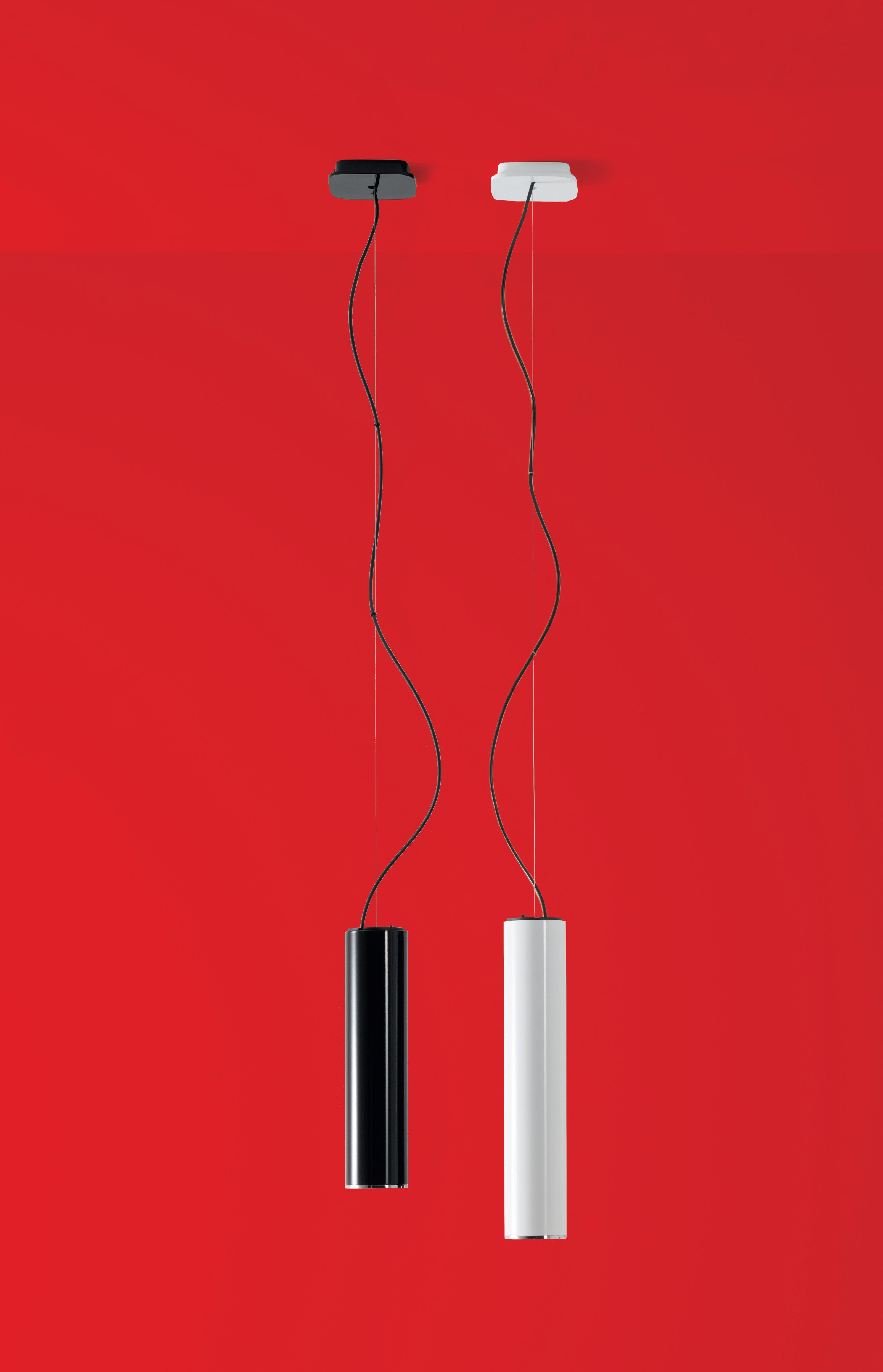 Look at me was designed as a family of single, cluster or track-mounted suspensions with a characteristic diffuser. Its shape is iconic and essential, yet perfectly designed to guarantee maximum light efficiency and comfort thanks to two optical elements positioned at either end of the diffuser body.