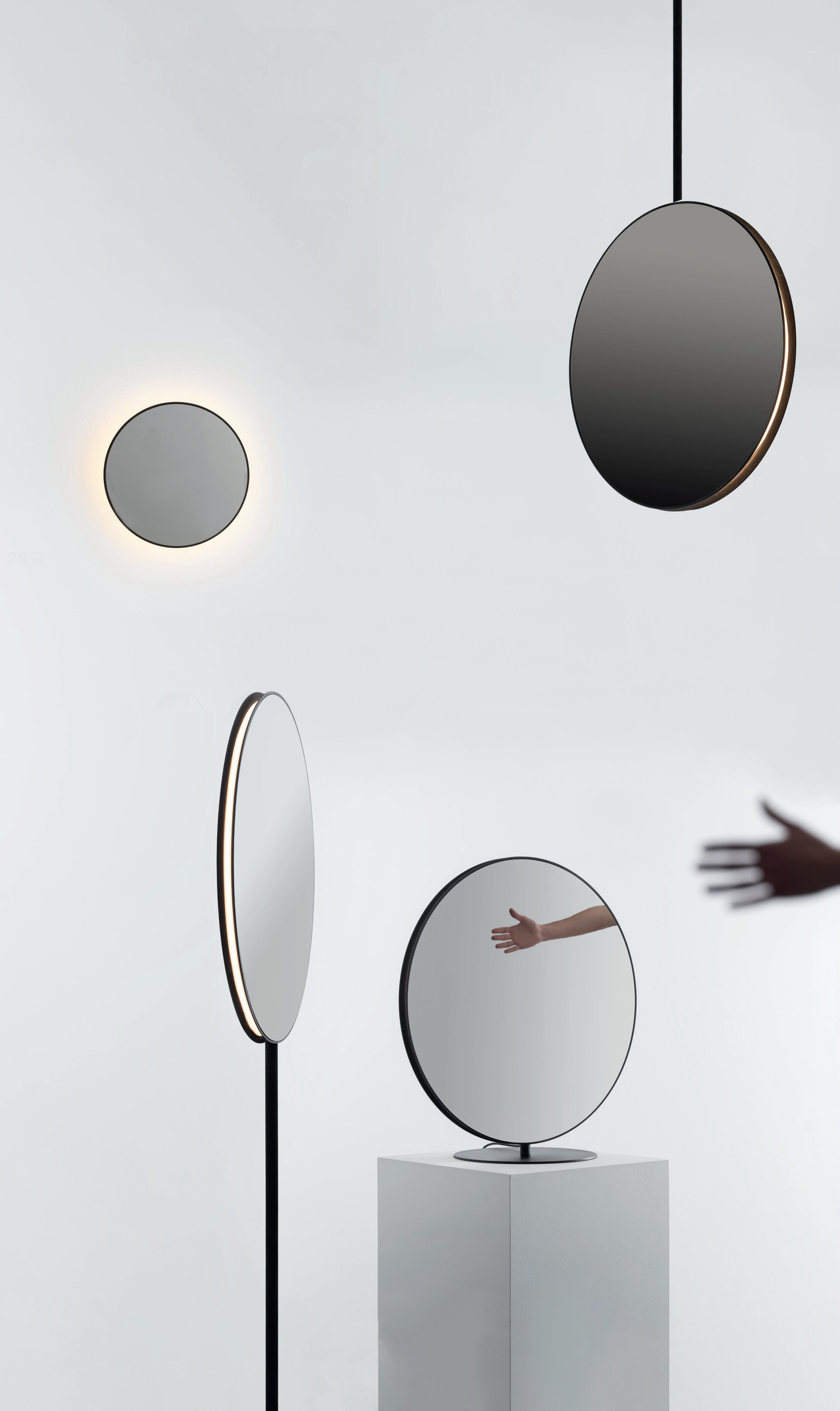 Se|eS is a disk mirrored on both sides which, with a continuous light set back on the side, illuminates the environment without invading it.