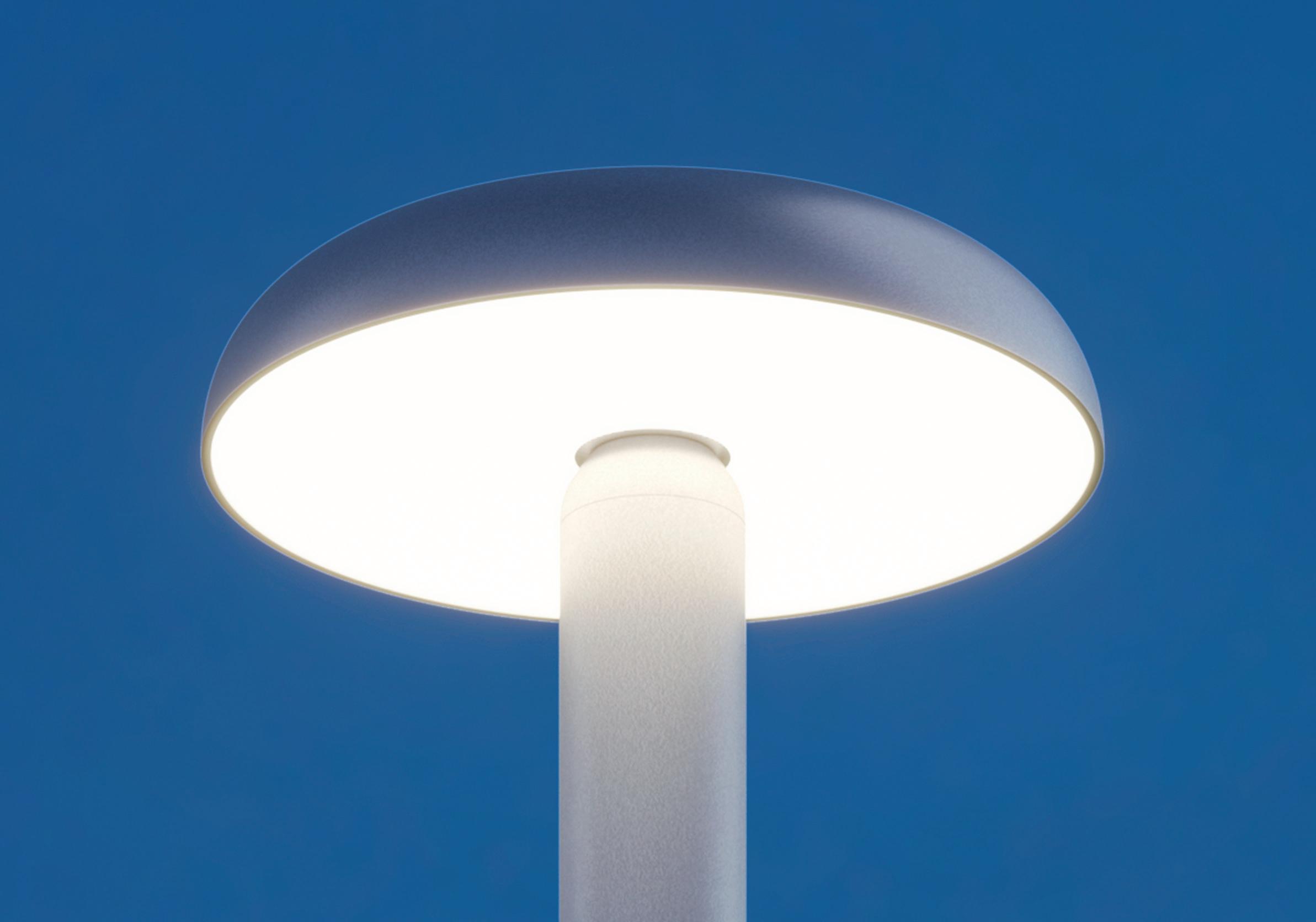 The geometry of the head screens light in compliance with regulations, avoiding glare, and the structure is minimal but very durable, perfect not only for private but also public outdoor spaces.