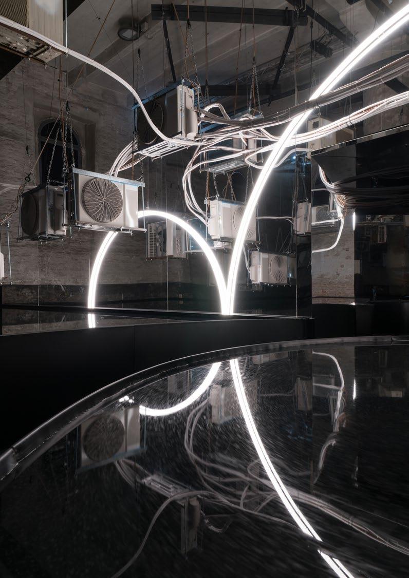 An immersed and abstract experience through light, sculpting the intangibility and the essence of the exhibition. Thanks to Artemide App, the lighting fixtures become integrated in the gallery area, controlling the different scenarios or organizing automated routines and setups.