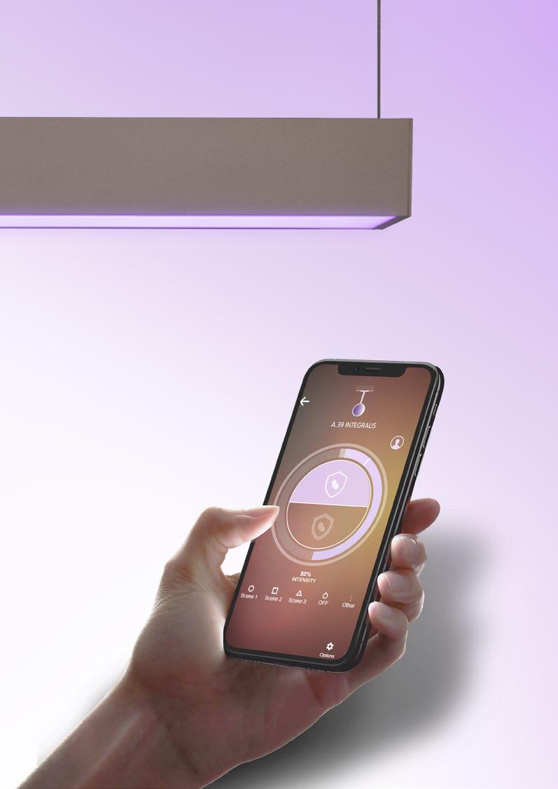 Adding new lighting fixtures effortlessly, both for small and large design projects, thanks to a simple reconfiguration process as a network and as settings of the App.