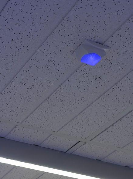 Movement detector integration to maximize the Antimicrobial effect over time in more critical areas as restrooms and corridors.