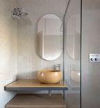 According to the lighting setup, the features can promote relaxation or boost energy.