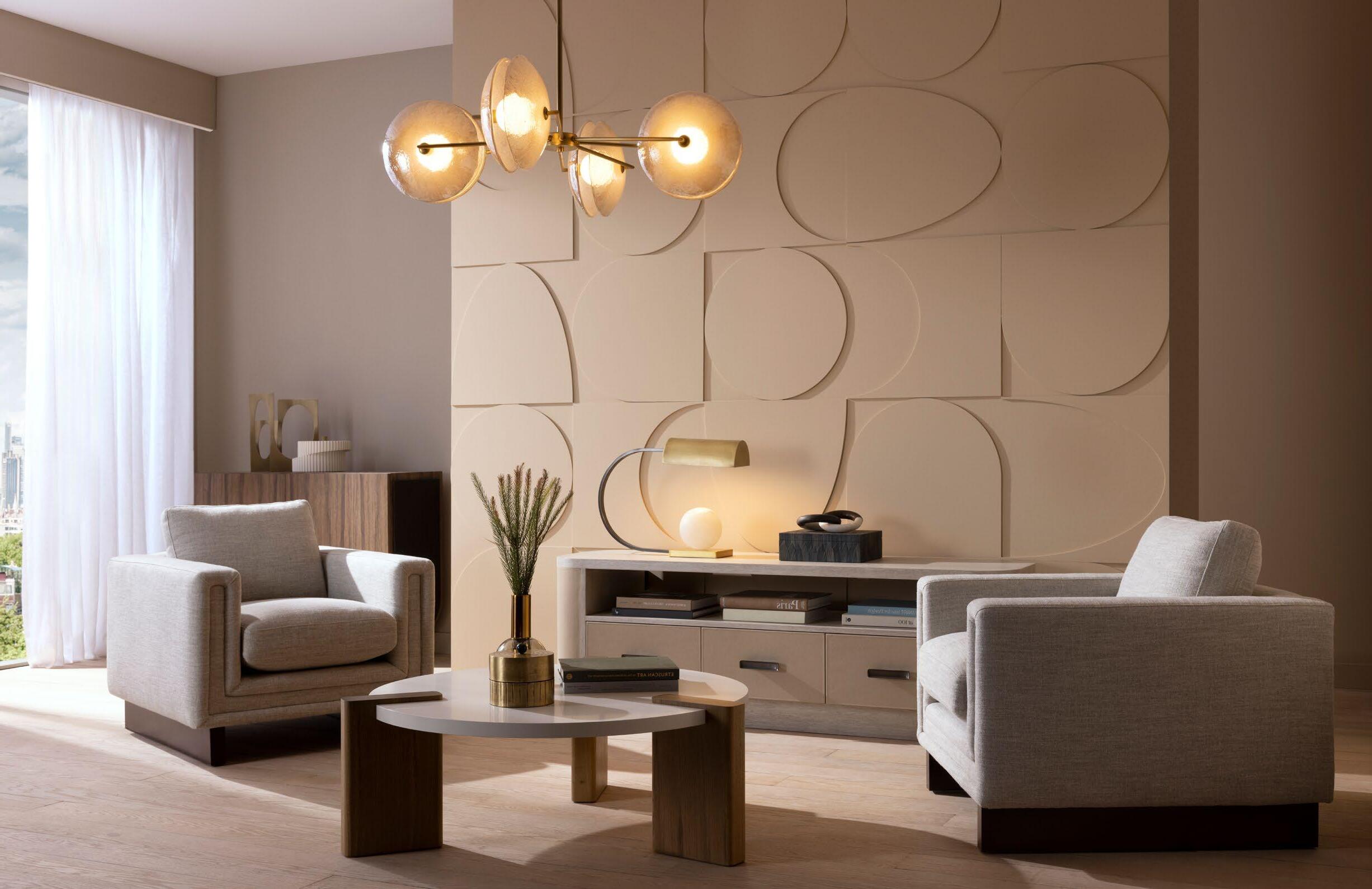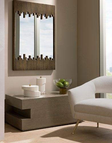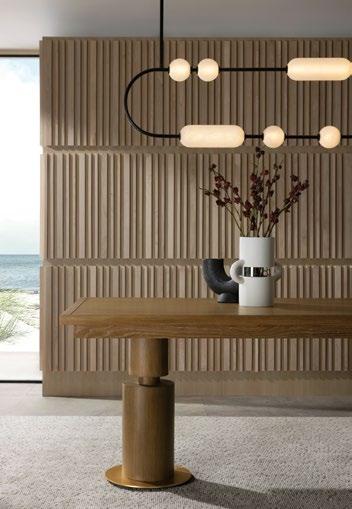 31 DEEP LUXE | S23 PG. 30 IMAGE: 2032 PERCY END TABLE, ASC08 WILCOMB SCULPTURE, 8139 AVALON OTTOMAN SWISS COFFEE, 8168 OLYMPUS SETTEE CLOUD BOUCLE, DMS04 WINONA CHANDELIER, FCS02 VANCOUVER COCKTAIL TABLE, GDASI03 SOURSOP SCULPTURE, ATS03 VALOUR CENTERPIECE PG. 31, IMAGE 1: FKS02 WRIGHTMAN DESK, ASC02 VALHALLA SCULPTURE, AVS01 VERENA VASE IMAGE 2: DMC07 SAVION CHANDELIER