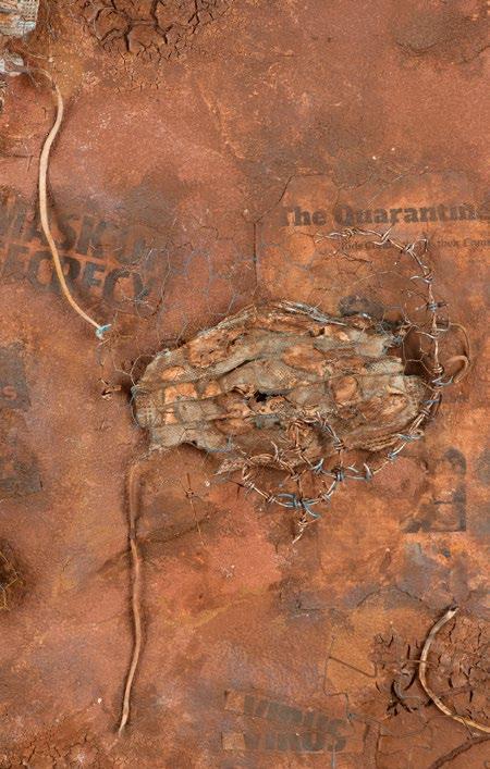 Luke’s CollegeMy artwork was influenced by the experiences of the COVID-19 pandemic and the isolation of the people who suffered around me. Observing surgical masks trapped in wired fences, under rocks, and embedded in the harsh Pilbara soil, deteriorating over time, inspired my commentary behind this artwork. Although society has moved on, this horrific virus still lingers. It lingers, not only through the remains of used masks in our environment but also through the repercussion on humanity.