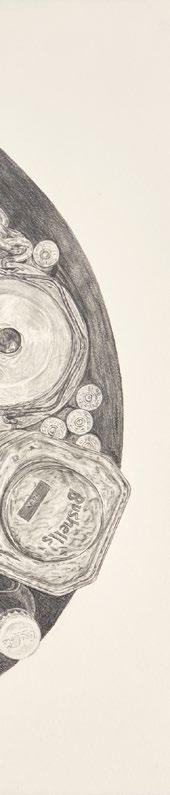 My artwork is inspired by recounts of my Nuno in the mid 1970s. It is said that Nuno filled three, 44-gallon drums with survivalist items, hid them on his farming property, and prepared his family to readily relocate to ensure survival. Nuno’s preparation was in response to the many conflicts that occurred during his lifetime. My first drawing conveys the concerns and realities of Nuno’s generation while second drawing highlights the comforts and materialism of modern society. This comparison raises the question of what we would do today in the event of a crisis.