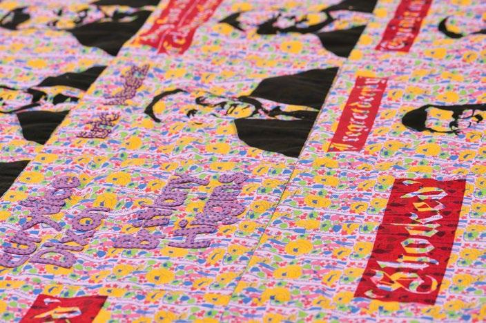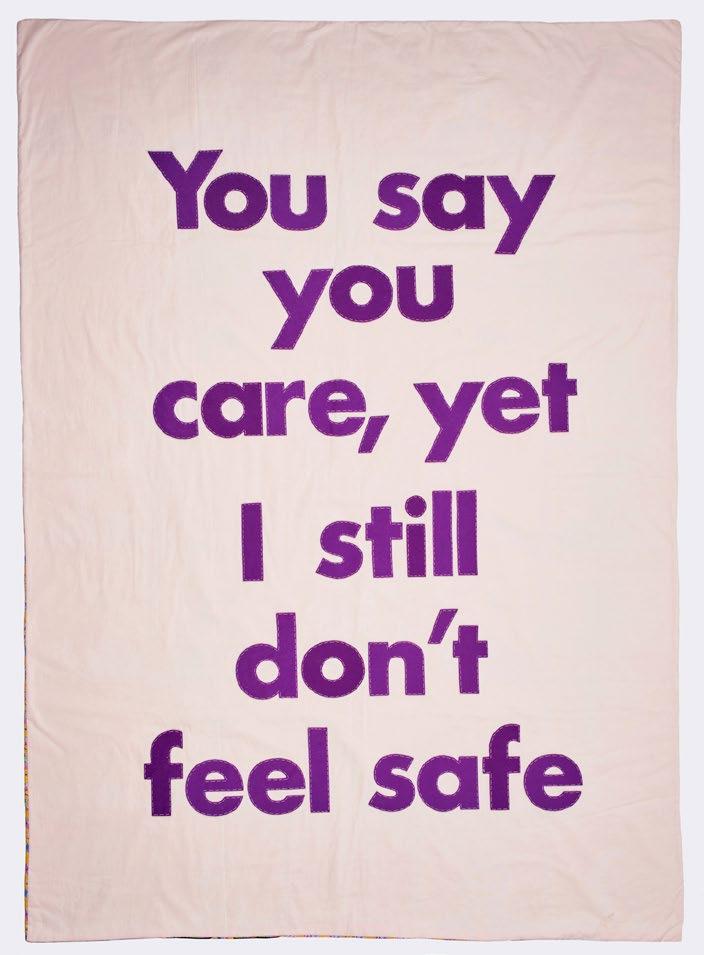 My quilted artwork intentionally contradicts its intended use, which is to protect and provide warmth. I have utilised the medium of textiles, a craft traditionally associated with women, as a visual weapon in the ongoing education of men.