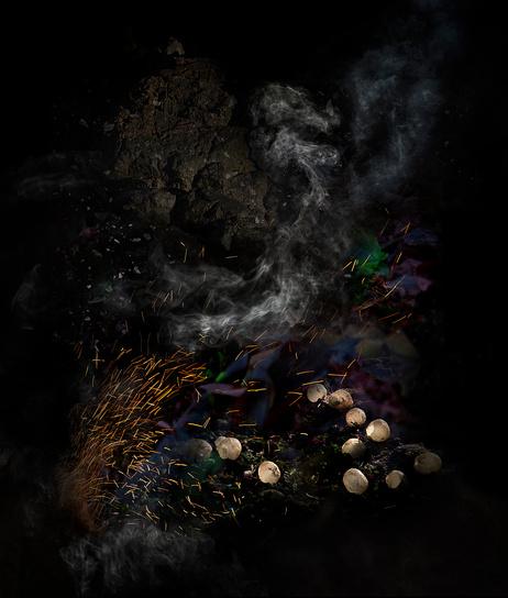 Sand from three different parts of the world: -black sand from South Lake Tahoe, California -pink sand from Harbour Island Bahamas -course sand from Crescent Beach, CaliforniaShells from Waikiki Beach in Hawaii -Shells from Harbour Island Bahamas -Soil from Northern California -PastelsAcrylic paint -Resin -Charcoal made from the findings of my burnt home in Malibu, California 152x121cm