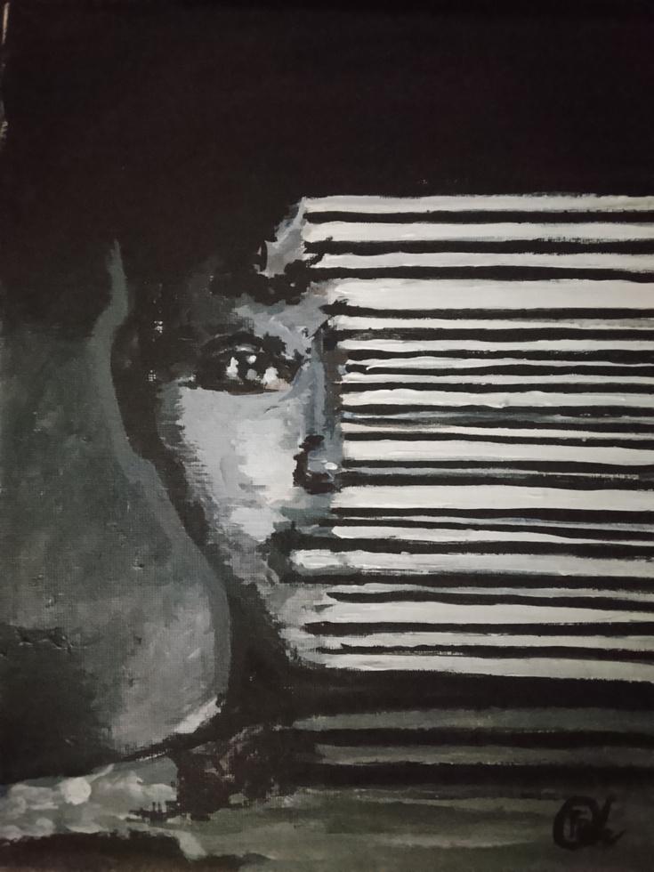 Acrylic and oil pastel on canvas with a textured plaster finish 40X50cm