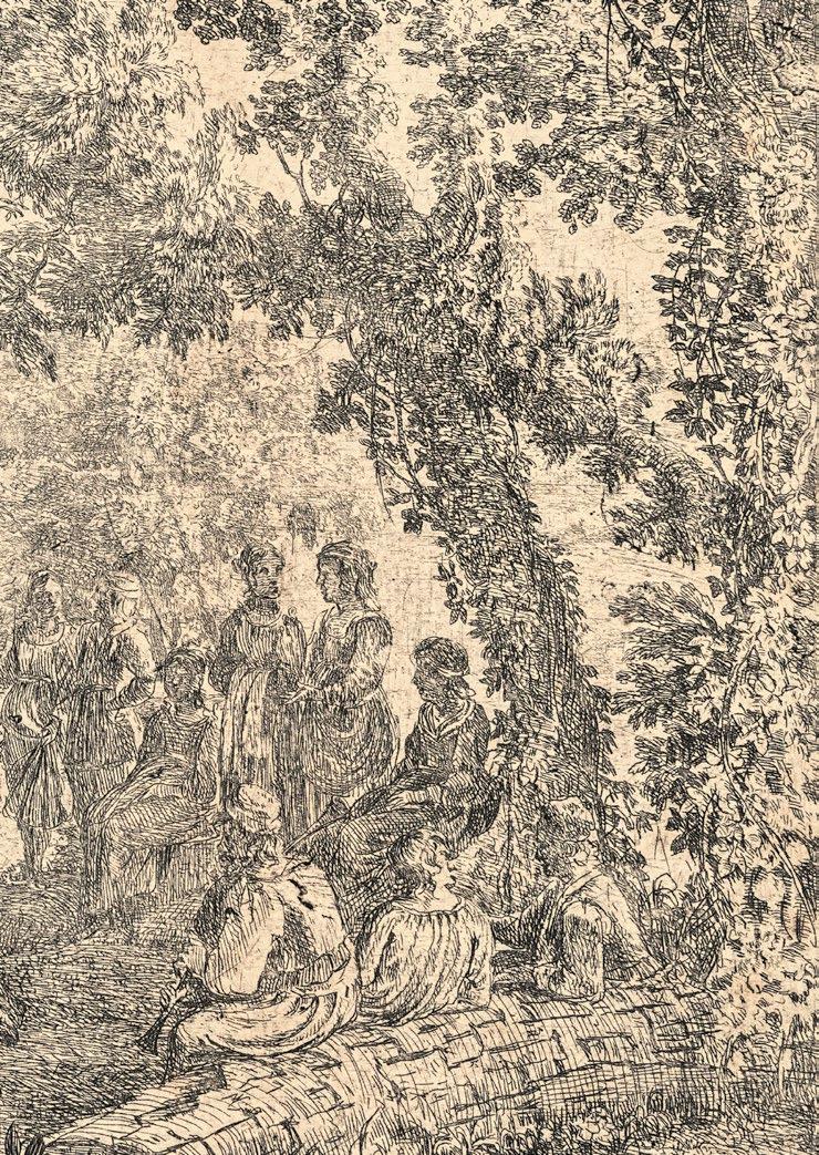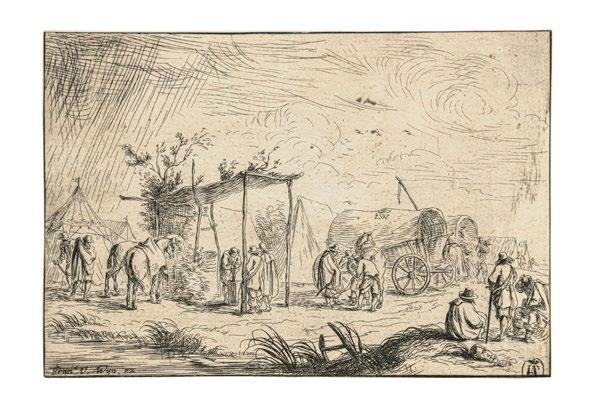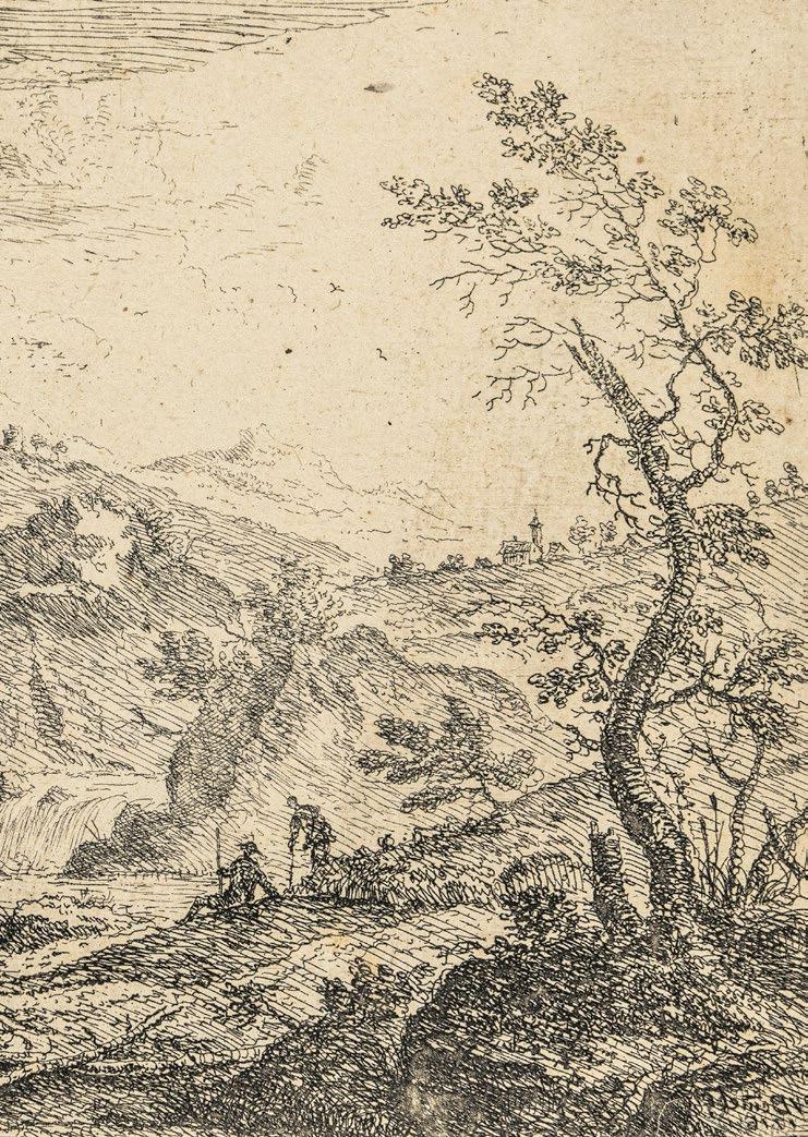Hochinteressante Zusammenstellung von sieben bis anhin größtenteils unbeschriebenen Zustandsdrucken, die es möglich machen, die von Winterberg vorgeschlagene Abfolge der Zustände neu zu ordnen. Sie belegen eindrucksvoll die tastende Arbeitsweise des jungen Künstlers bei der Entwicklung von zwei rembrandtesken Landschaftskompositionen: