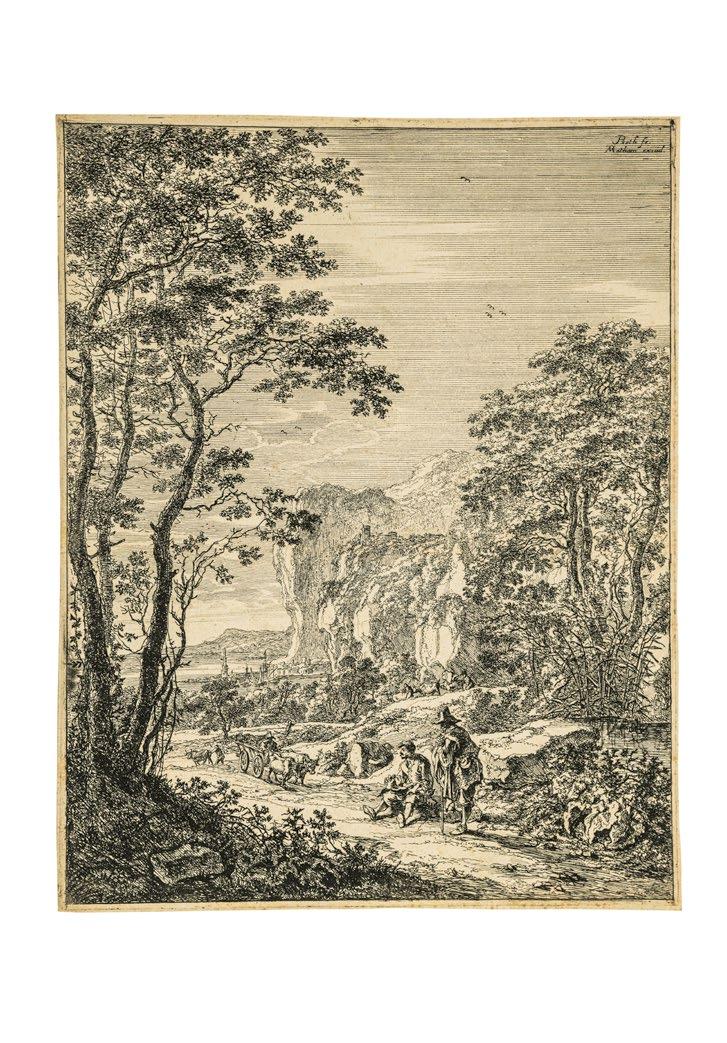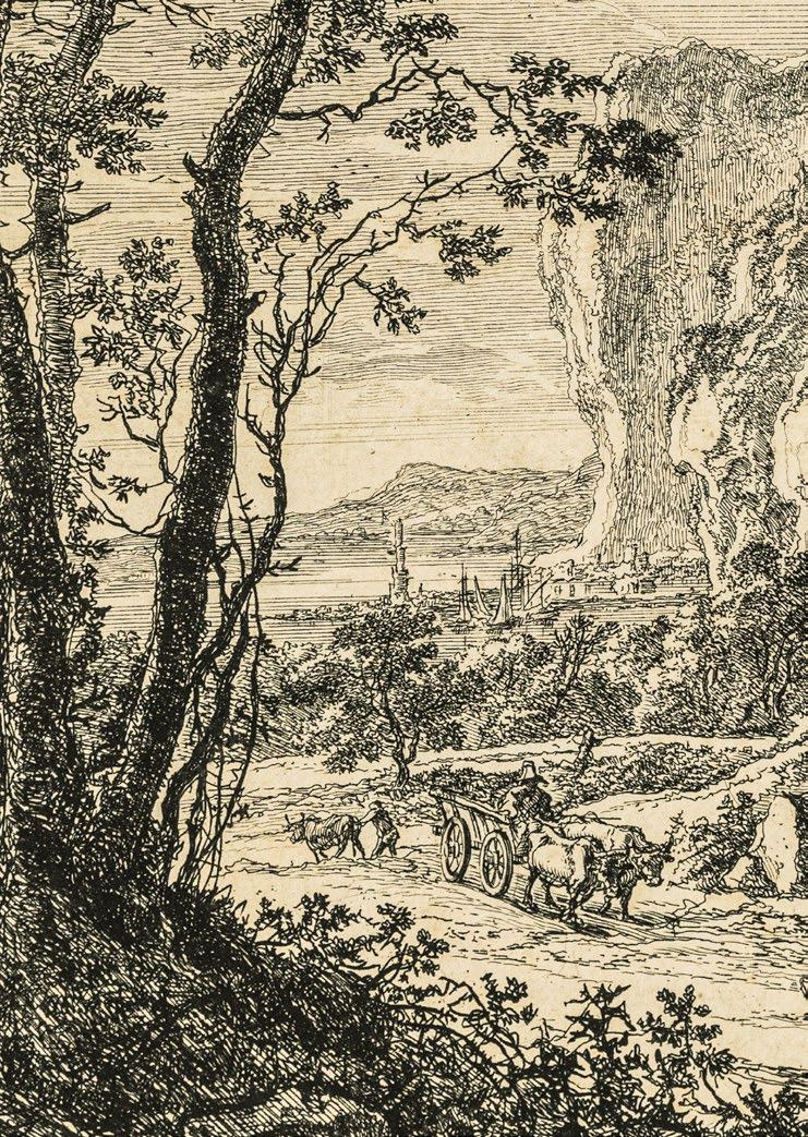 The signature on the lower left removed. Inscribed now at the lower edge with: “F. E. Weirotter f.” and along the upper edge the letter “a” on the right and the number “11” from Suite de XVIII Paysages… at left. (State B.a.III = Winterberg 209,II)