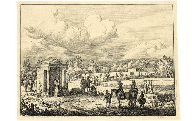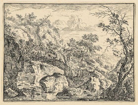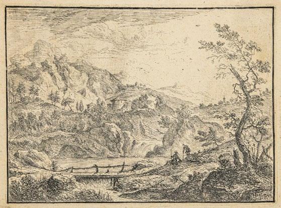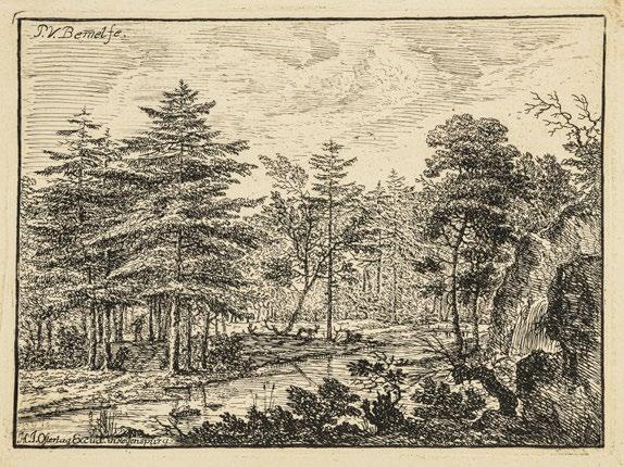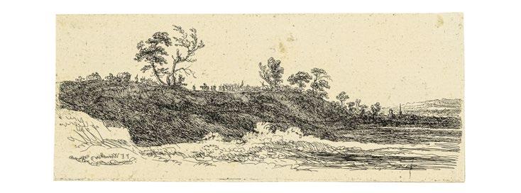 A highly interesting compilation of seven still for the most part undescribed state proofs which make it possible to reorder the sequence proposed by Winterberg. These impressions strikingly document the tentative working approach of this young artist in developing these Rembrandtesque landscape compositions:
