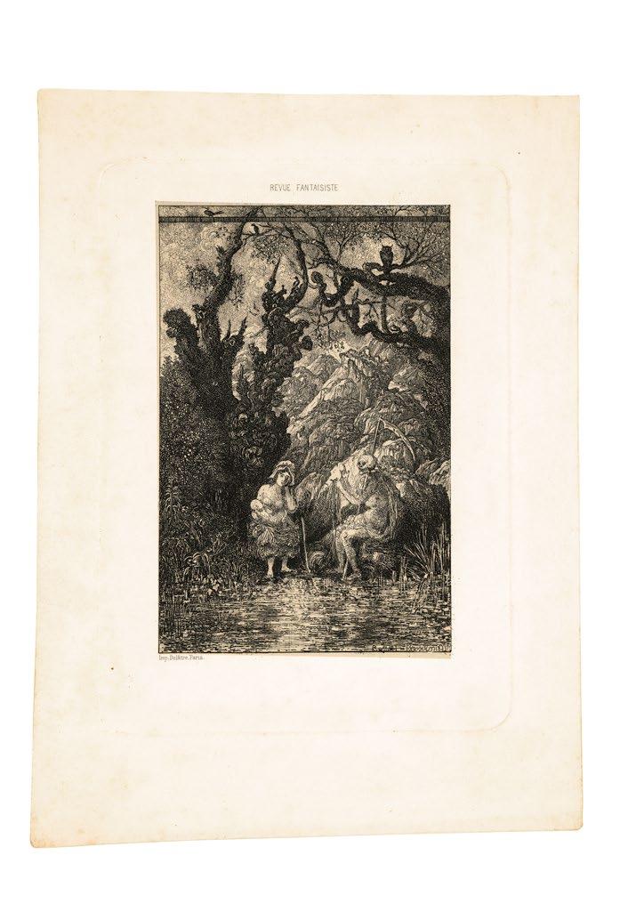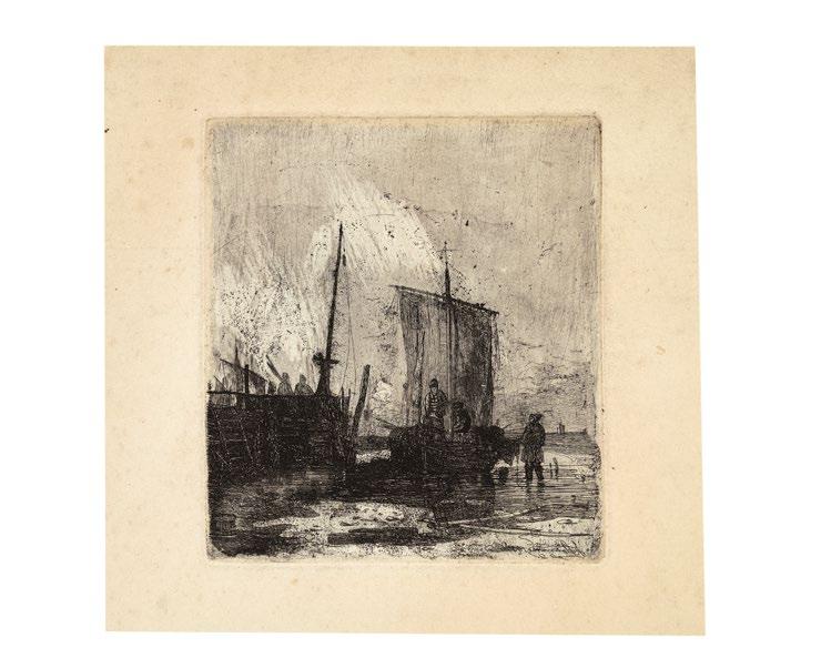 With narrow and in places extremely fine borders around the partially still inky platemark. Two pale brownish (ink?) splatters and the weak trace of a fold above the lower right corner; residues of old mountings on the reverse. Otherwise in a quite beautiful state of preservation.