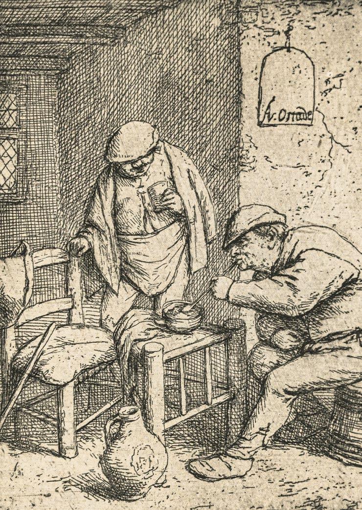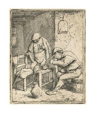 Brilliant, razor-sharp early impression. Comparable to the examples in the British Museum in London, the Metropolitan Museum of Art in New York, and the Minneapolis Art Institute, still before the scratches in the upper area of the halfcolumn in the window reveal, which Röver-Kann does not specifically mention in the recently published The New Hollstein, but which can be seen in the damaged copy of the Rijksmuseum she used for an illustration, as well as in the impression owned by the Graphische Sammlung, Munich.