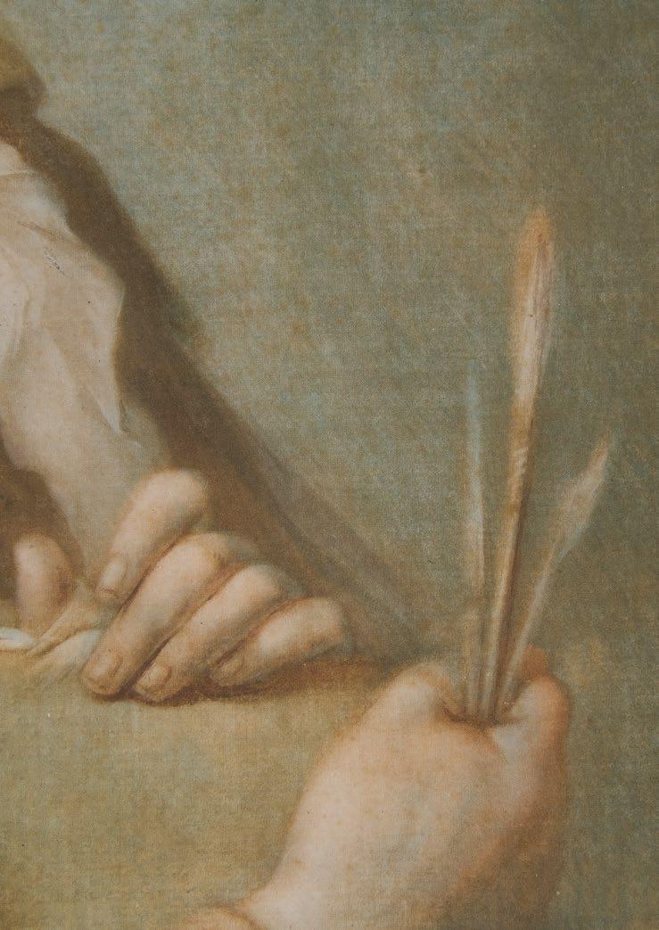 Not long before his appointment as electoral court painter in Munich in 1769, Wink stands now at the zenith of his artistic power. Still permeated by the dynamism of South German Rococo, he groups his nine Muses as attendants of Apollo, the god of the arts, at the feet of Mount Helicon or Parnassus, at whose summit Pegasus ascends into the air. The mythical horse is said to have struck springs out of the rocks with its hooves at various locations – including the two springs of Aganippe and Hippocrene, which were sacred to the Muses since consumption of their waters enhanced their creativity.