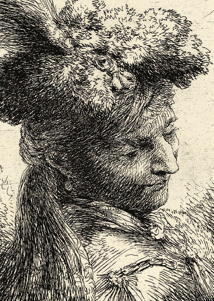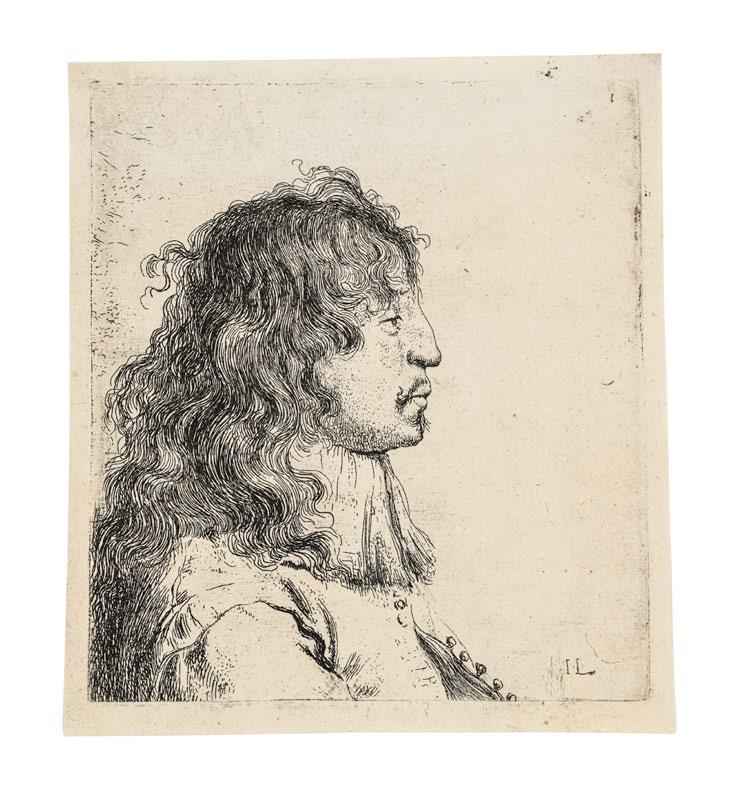 Extremely rare early impression from the 1st state, prior to subsequent reworking with the graver, specifically on the chin, right cheek, and right eye. Of the loveliest transparency and radiance. Prior to the deletion of the artist’s address, and prior to the later publisher’s address I: de Ram Excudit.