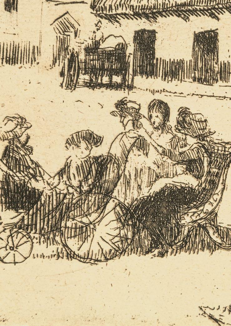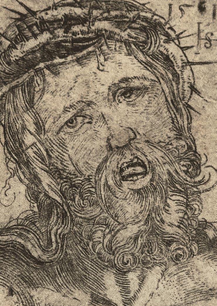 Einer der wenigen bekannten Abzüge mit der noch nicht vollständig abgebrochenen rechten oberen Ecke, die hier nur noch ganz ungleich im Druckbild erscheint, im Unterschied zum Abzug in der Albertina, Wien. Ansonsten herrlich klar und prägnant im Lineament und insofern sowohl dem insgesamt sehr schwach gedruckten Exemplar des II. Zustandes in Dresden, als auch den meisten der späteren Abzüge des III. Zustandes weit überlegen, bei denen die Ecke vollständig verloren gegangen ist. Den ersten Etat konnte Röver-Kann jüngst nur in den öffentlichen Sammlungen in Berlin, London (V&A) und New York nachweisen.