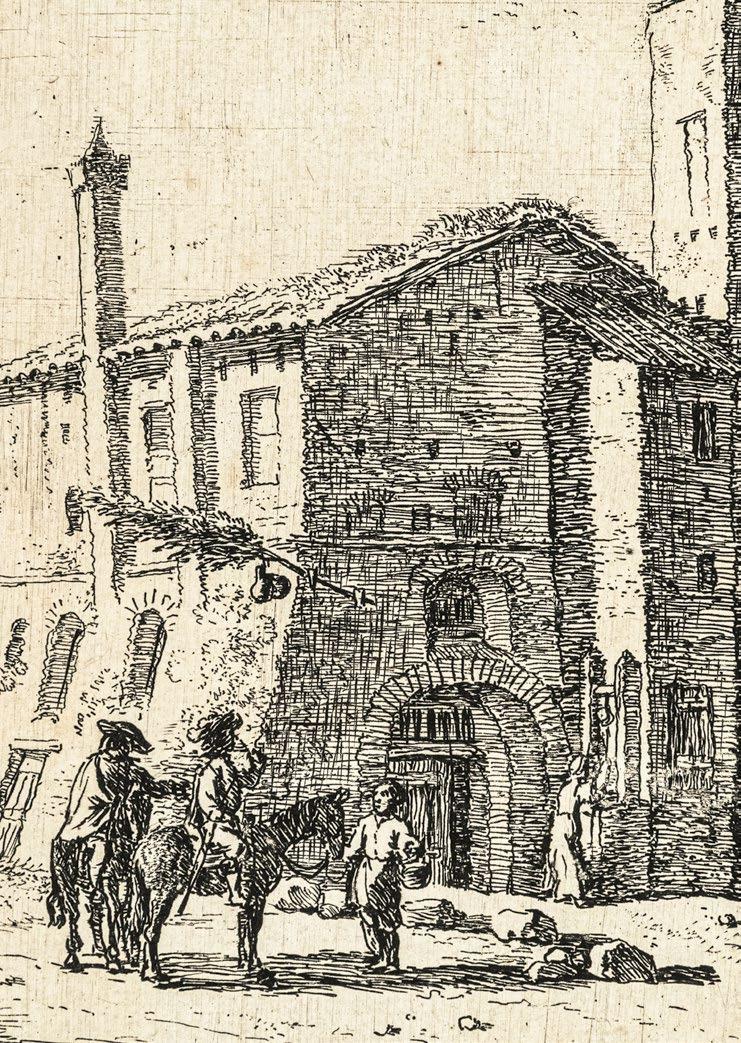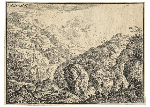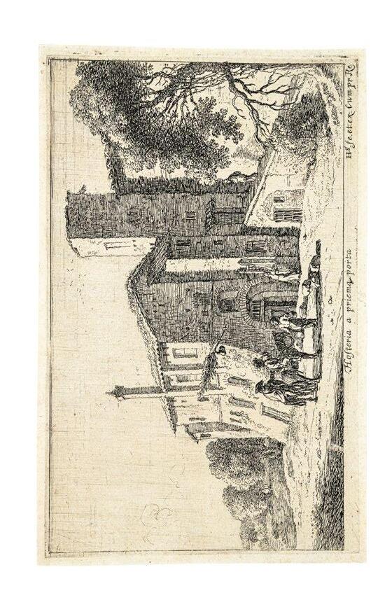 Die obere Darstellung hinzugefügt ohne Himmel. Mit der spiegelbildlichen Signatur F E Weirotter. (Zustand A.II)