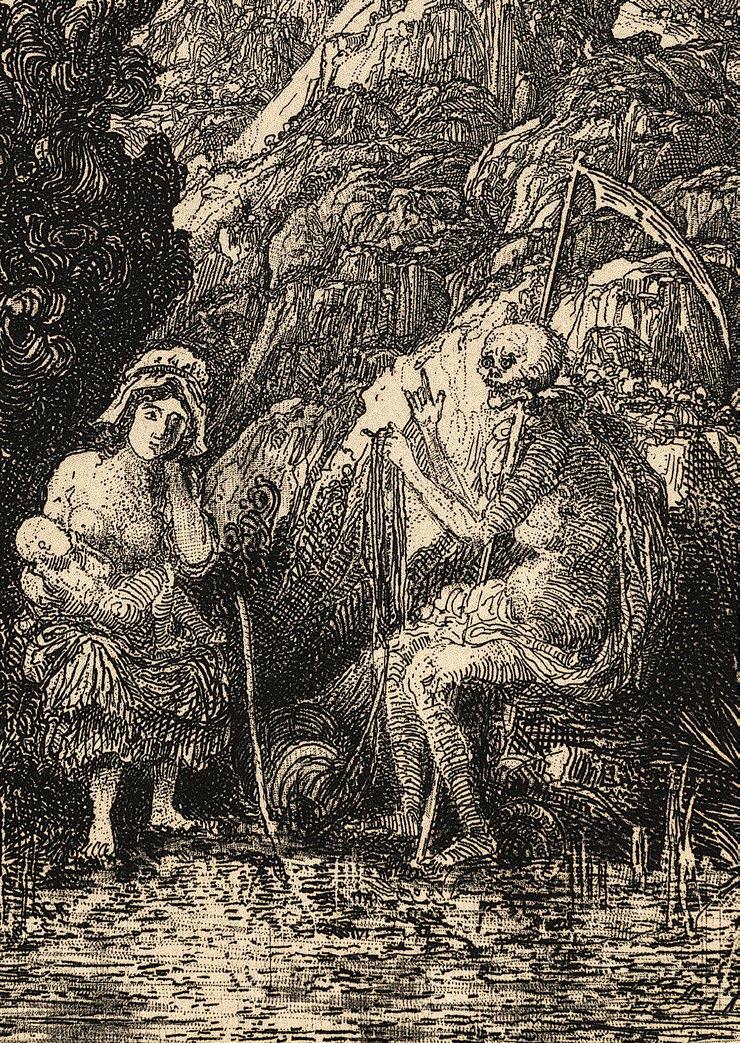Bartel Beham’s Child with Four Skulls is the most evolved of four related compositions on the theme of death. (S. H. Goddard)