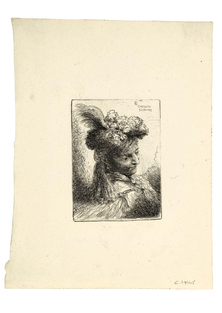 The bust portrait of a man wearing a gorget and a feathered beret, dated 1631, can be regarded as van Vliet’s earliest etching after a now lost tronie by Rembrandt. To date, it remains uncertain whether the typographic denotation GEORGIUS RAGOCY, found on an impression from the 2nd state now in the Austrian National Library in Vienna, which identifies the sitter as the Prince Georg I Rágóczi of Transylvania (1593-1648), goes back to Vliet himself. It was later adopted by Hugo Allard, who acquired the copper plate in the late 17th century, and deleted both the date as well as the two artists’ addresses for his publication.