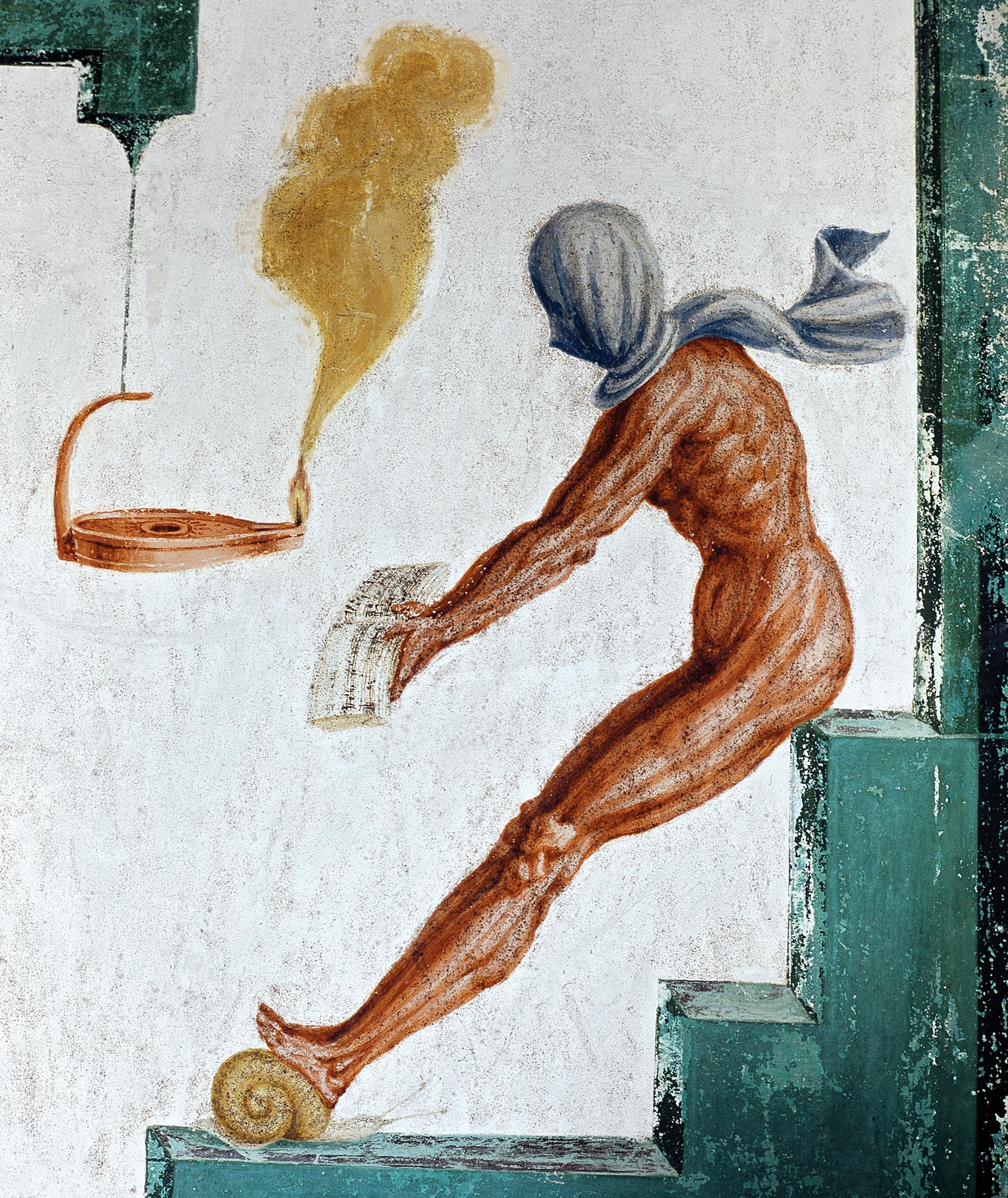 Ma dopo lo Zaist e il Beltrami, o la più recente citazione di catalogo da parte di Aurelia Perotti9, il ciclo di Torre Pallavicina non ha trovato fortuna, relegato nel limbo delle cose perdute o trascurabili. Forse per le difficoltà dell’accesso alla dimora eccentrica, o addirittura per le censure del cavalier Muoni10 che stigmatizzava «gli affreschi dei fratelli Campi esprimenti le scene più lubriche e licenziose della mitologia», in linea probabilmente con le convinzioni dei